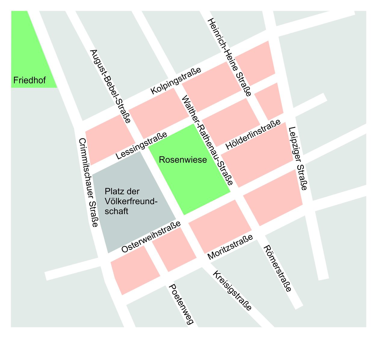 In der kommenden Woche wird das Quartier innerhalb der Straßenzüge Kolpingstraße, Crimmitschauer Straße, Moritzstraße und Leipziger Straße als Tempo-30-Zone ausgewiesen. Von der neuen Verkehrsregelung betroffen sind folgende Straßen bzw. Straßenabschnitte: Poetenweg, Osterweihstraße, Kreisigstraße, Lessingstraße, August-Bebel-Straße, Walther-Rathenau-Straße, Hölderlinstraße, Heinrich-Heine-Straße.