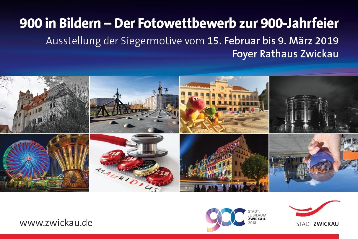 Aus Anlass des Stadtjubiläums fand im vergangenen Jahr der Fotowettbewerb „900 Jahre Zwickau“ statt. Mit mehr als 260 eingereichten Beiträgen ging er als eines der letzten Angebote der 900-Jahrfeier am 31. Dezember zu Ende. Vom 15. Februar bis 9. März 2019 werden die monatlich prämierten Beiträge im Foyer des Rathauses ausgestellt.