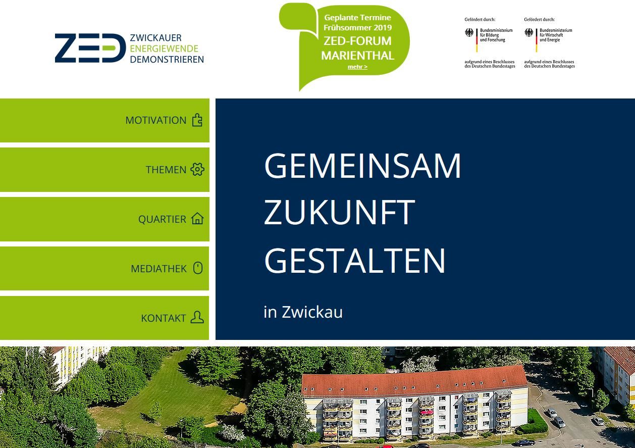 Im November des vergangenen Jahres startete „ZED – Zwickauer Energiewende demonstrieren“. Ziel des mit 22 Mio. Euro veranschlagten Projektes ist es, in einem bestehenden Wohnviertel nach Möglichkeit ein „Null-Emissionsquartier“ zu erreichen. Aktuell befinden sich die Stadt Zwickau, die Westsächsische Hochschule Zwickau (WHZ) und ihre elf Partner in der Konzeptionsphase. Hier werden technische Möglichkeiten analysiert und Lösungsmöglichkeiten skizziert, die ab Ende 2020 umgesetzt werden sollen. Baubürgermeisterin Kathrin Köhler, der wissenschaftliche Projektleiter Prof. Dr. Tobias Teich von der WHZ und Projektkoordinator Sven Leonhardt erläuterten im Rahmen eines Pressegesprächs am heutigen Dienstag nicht nur den aktuellen Projektstand. Zugleich stellten sie die neue Webseite www.energiewende-zwickau.de vor, auf der künftig regelmäßig Ergebnisse und Ereignisse veröffentlicht werden.