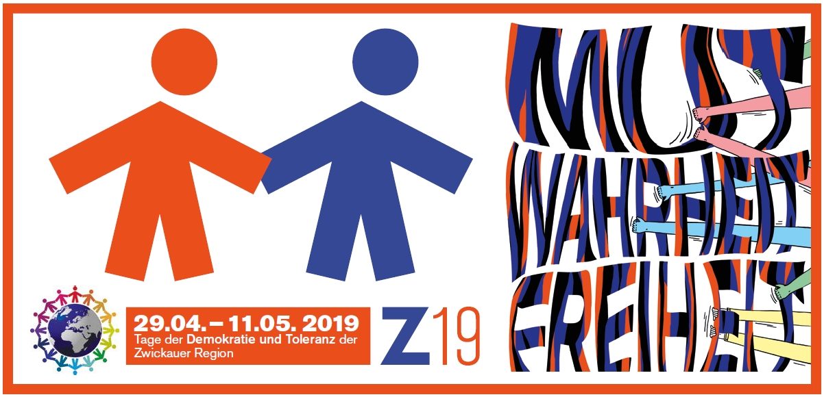 Am Montag (29. April) beginnen offiziell die diesjährigen Tage der Demokratie und Toleranz in der Zwickauer Region. Bis 11. Mai finden etwa 25 Veranstaltungen rund um das diesjährige Motto „Mut – Wahrheit - Freiheit“ statt, beispielsweise Vorträge, Lesungen, Konzerte oder Workshops. Zu den Angeboten zählen etwa das Fest und das Konzert Zwikkolör (4. Mai), die Podiumsdiskussion „Antigenderismus und Rechtspopulismus – Gemeinsam statt gegeneinander“ (6. Mai), der Vortrag „Lügenpresse? – Welchen Medien können wir heute noch trauen?“ (7. Mai) oder ein Workshop „Kommunalpolitik ist für alle“ (11. Mai).