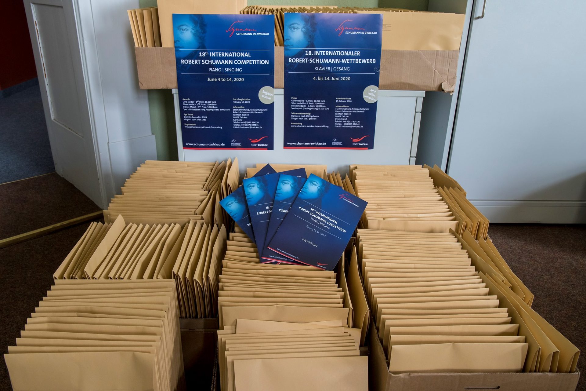 Die Ausschreibungen mit den exakten Wettbewerbsbedingungen sind in Deutsch und Englisch unter www.schumann-zwickau.de verfügbar. Sie werden außerdem an weltweit mehr als 350 Adressen versandt – u.a. Melbourne (Australien), Pretoria (Südafrika), Rio de Janeiro (Brasilien), Tokio (Japan) Montreal (Kanada). Mit mehr als 250 Adressen ging der größte Teil direkt an Musikhochschulen, um die Studentinnen und Studenten direkt ansprechen zu können.