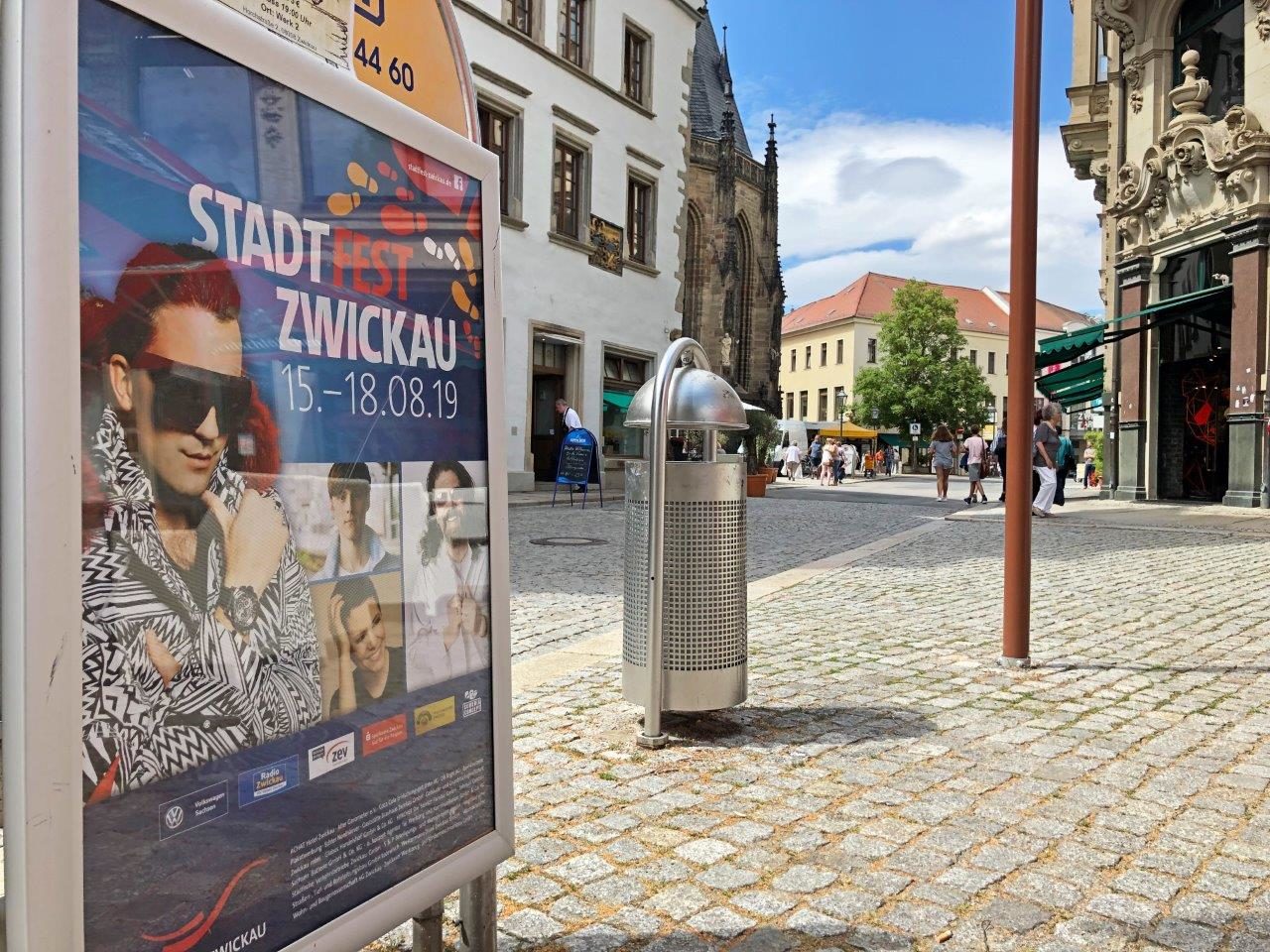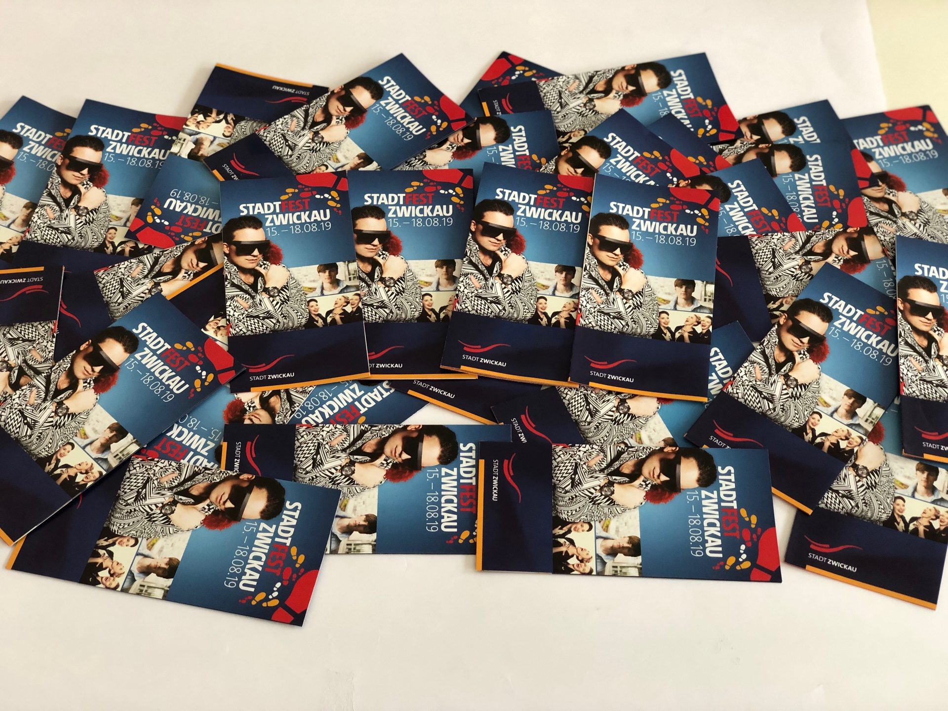Plakate und Flyer werben für das Stadtfest Zwickau