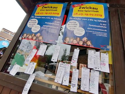 Heute war schon Tag 8 in der Spielstadt „Mini Zwickau“. Lange dauert es nicht mehr, dann schließt die fiktive Stadt im Areal der Pestalozzischule, Seminarstraße 3, wieder für ein Jahr ihre Tore. Doch bis dahin gibt’s noch einiges zu erleben! Im liebevoll ausgestatteten Spiel-Raum können die Kids nämlich nicht nur den spannenden Alltag der Erwachsenen nachahmen, sondern sich auch über täglich wechselnde Extras freuen! Nach den Bürgermeisterwahlen, verschiedenen Aktionen und Gästen in Spielstadtwoche 1 folgten zu Beginn der Spielstadtwoche 2 u. a. der Besuch des Jugendbeirates, ein wahrlich freundlicher „Tag der Komplimente“ und heute ein cooler Disconachmittag.