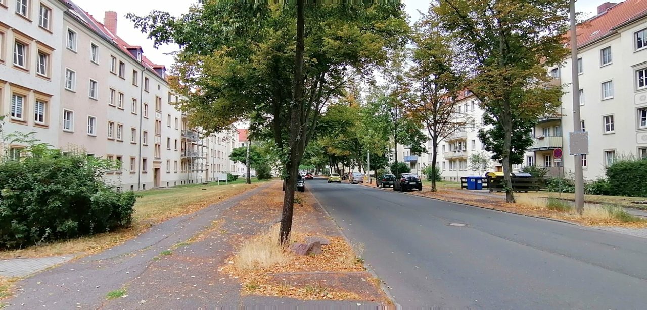 Franz-Mehring-Straße, Blick in Richtung Stadtzentrum