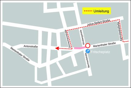Der stadtauswärtige Straßenverkehr wird in dieser Zeit über die Agricolastraße, Julius-Seifert-Straße und Zimmermannstraße umgeleitet.