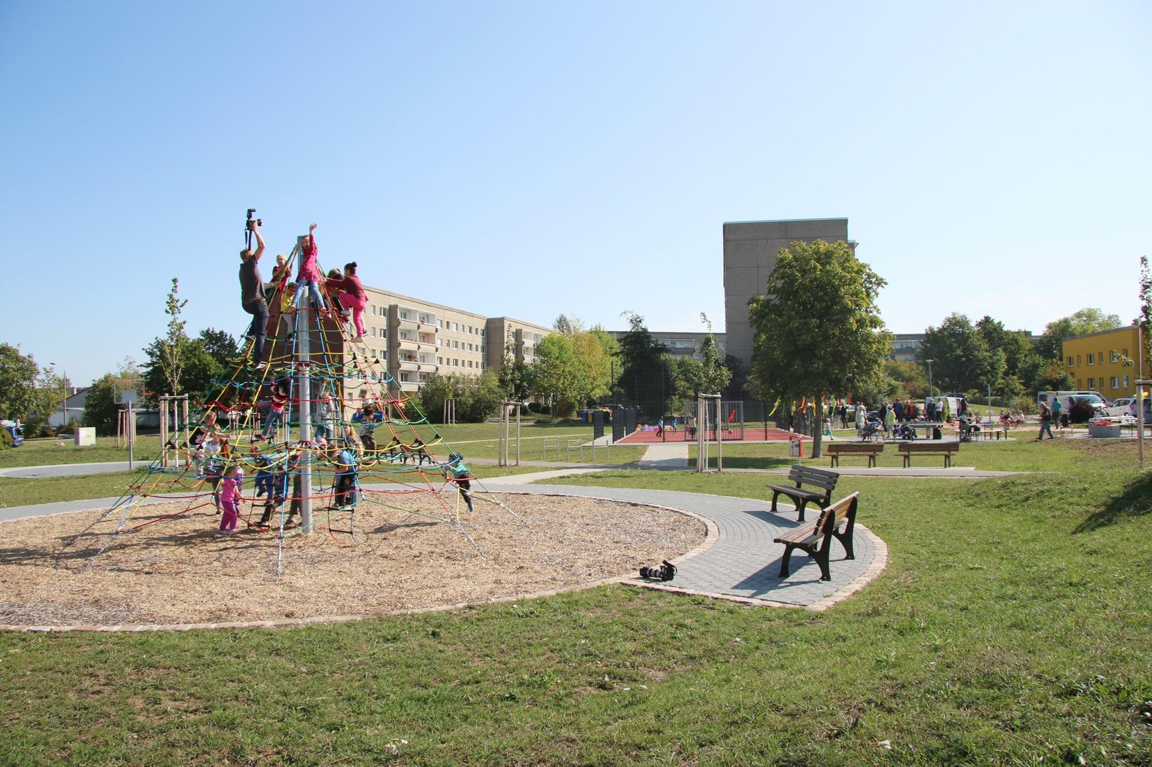 Es wurden insgesamt 420.000 € für die Umwandlung einer Brache in eine attraktive Grünfläche mit Spielplatz investiert. Dabei wurden durch das Förderprogramm Investitionspakt – Soziale Integration im Quartier - 378.000 € gefördert, das entspricht einer Förderquote von 90 Prozent. Die restlichen 10 Prozent wurden als Eigenanteil durch die Stadt Zwickau erbracht.