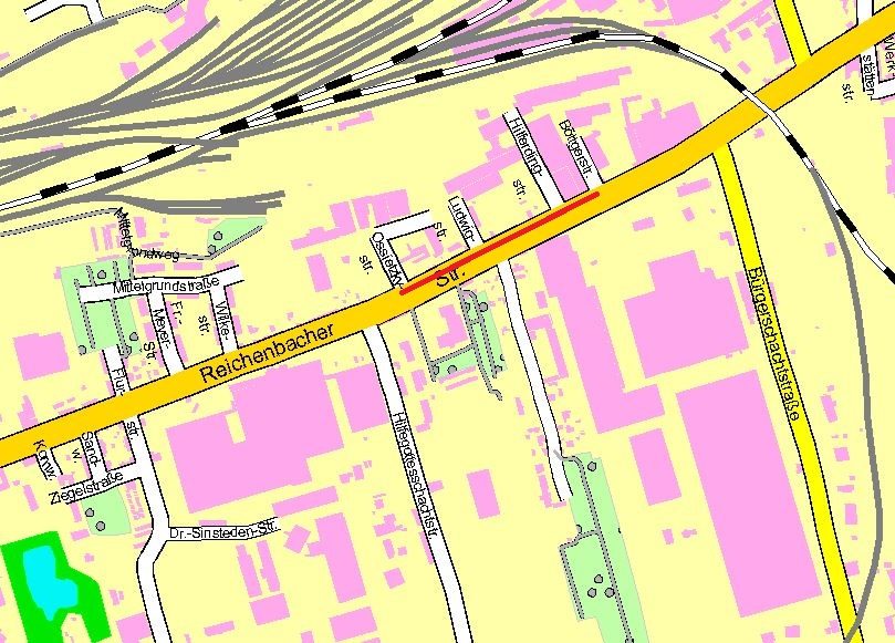 Auf Grund erheblicher Fahrbahnschäden in Form von Spurrillen, Absenkungen und Ausbrüchen wird ein weiterer Abschnitt der Reichenbacher Straße saniert. Die Arbeiten erfolgen in dem rund 300 Meter langen Abschnitt zwischen Böttger- und Ossietzkystraße. Erneuert wird ausschließlich die Straßendecke des geschädigten Bereichs auf der stadtauswärts rechten Spur. Somit kann der Verkehr auch während der Bauarbeiten in beiden Richtungen, jeweils auf einer Spur, aufrechterhalten werden.