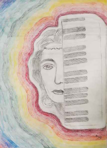 „Claras Träumerei“, Bleistift und Buntstift, Schülerarbeit Peter-Breuer-Gymnasium 2019