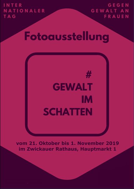 Auch Zwickau widmet sich in diesem Jahr dem Thema in Form einer Fotoausstellung mit dem Titel „#GEWALTIMSCHATTEN“. Diese ist bereits ab Montag, 21. Oktober im Foyer des Rathauses, Hauptmarkt 1, im 1. OG zu sehen.