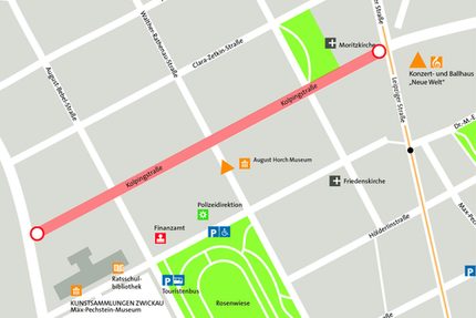 Die Umleitungen werden ausgeschildert und erfolgen über die Pölbitzer Straße, Jahnstraße und Crimmitschauer Straße.