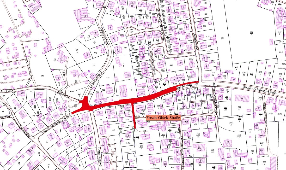 2.3. Vorhabenbeschluss zum Bauvorhaben „Erneuerung Straßenoberbau August-Schlosser-Straße und Frisch-Glück-Straße“, Bereitstellung von überplanmäßigen Mitteln und Vergabe weiterer Planungsleistungen