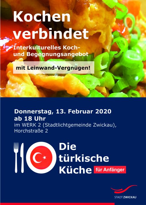 Am Donnerstag, 13. Februar 2020, wird im Rahmen von „Kochen verbindet“ wieder gemeinsam geschnibbelt, gekocht, gesprochen, gegessen und ein Film geschaut. Diesmal findet die Veranstaltung in den Räumlichkeiten der Stadtlichtgemeinde Zwickau, im WERK 2 in der Horchstraße 2, statt.