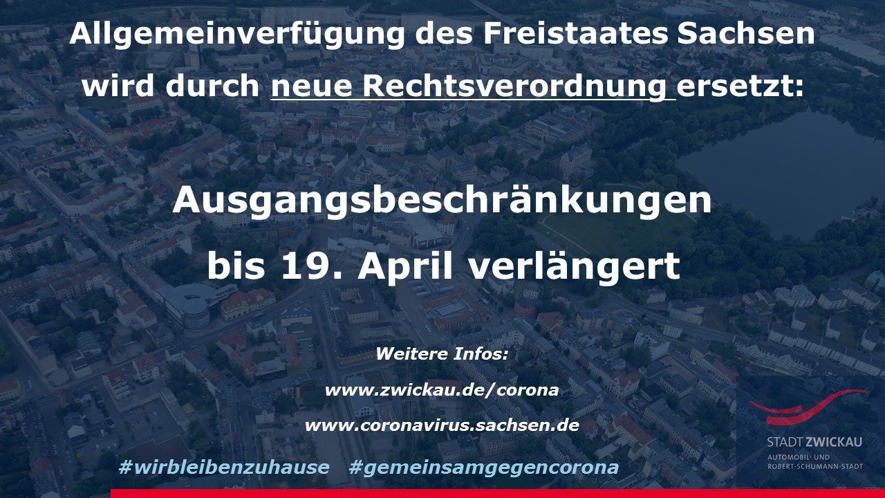 Das Kabinett des Freistaats Sachsen hat heute eine neue Rechtsverordnung verabschiedet, die bereits morgen in Kraft tritt. Die Corona-Schutz-Verordnung löst die bisherige Allgemeinverfügung „Ausgangsbeschränkungen“ vom 22. März 2020 ab und gilt bis einschließlich 19. April 2020. Ziel der Rechtsverordnung ist es insbesondere, dass die physischen sozialen Beziehungen zwischen Menschen weiterhin auf ein Mindestmaß reduziert werden, um die Ansteckungsgefahr zu verringern. Außerdem wurde die Allgemeinverfügung zum Verbot von Veranstaltungen vom 20. März 2020 überarbeitet und tritt in ihrer neuen Fassung ebenfalls mit Ablauf des 19. April 2020 außer Kraft.