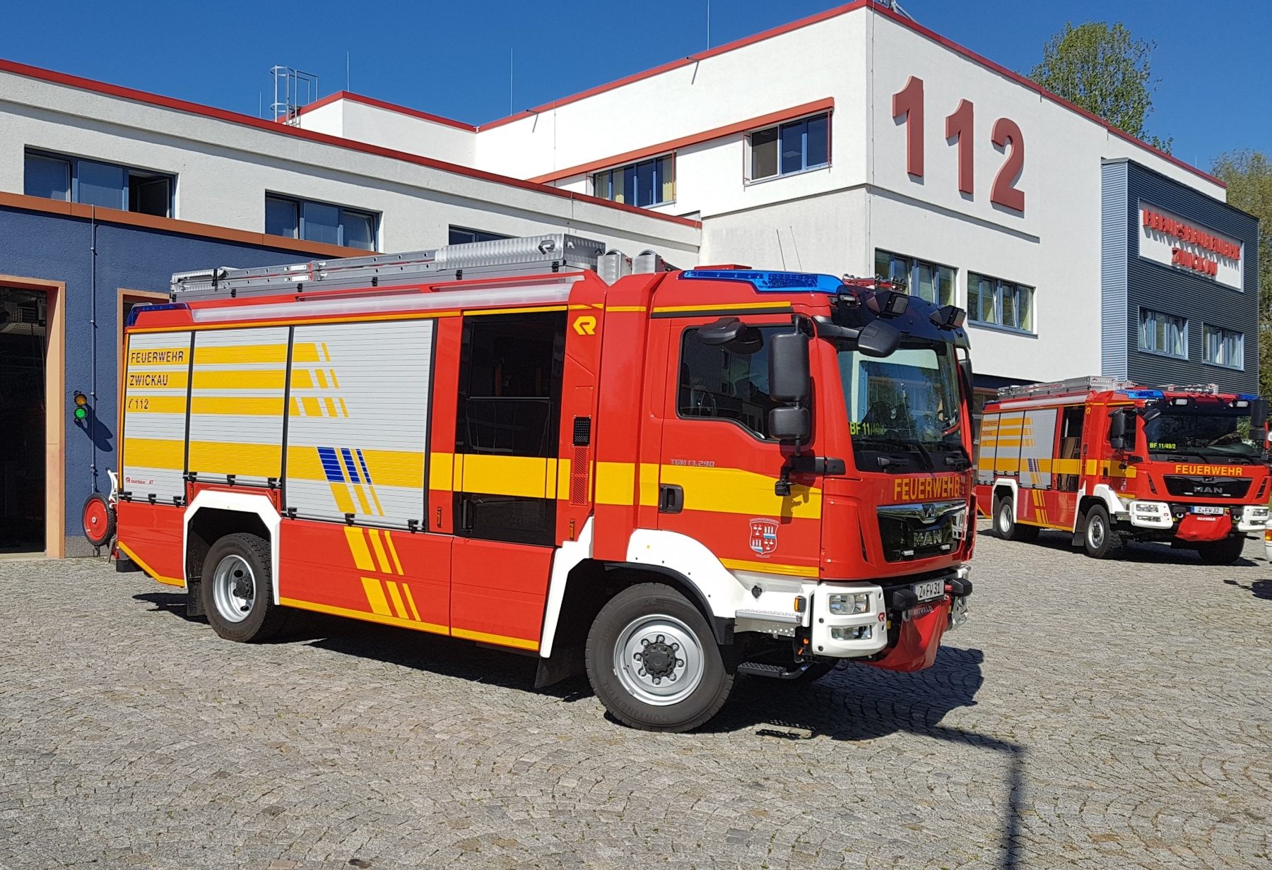Am heutigen Montag, dem 20. April, stellte die Feuerwehr der Stadt Zwickau zwei neue Hilfeleistungslöschfahrzeuge (HLF 20) in Dienst. Diese ersetzen zwei Löschfahrzeuge im Fuhrpark der Berufsfeuerwehr. In jedem neuen HLF 20 ist ein Löschwasserbehälter mit einem Fassungsvermögen von 2.000 Litern, eine Schaumzumischanlage und eine Seilwinde verbaut. Die technische Beladung ermöglicht sowohl die Brandbekämpfung als auch die technische Hilfeleistung, zum Beispiel bei Verkehrsunfällen. Die Gesamtkosten pro Fahrzeug liegen bei 505.000 Euro. Darin enthalten ist die Förderung durch den Freistaat Sachsen mit 182.000 Euro.