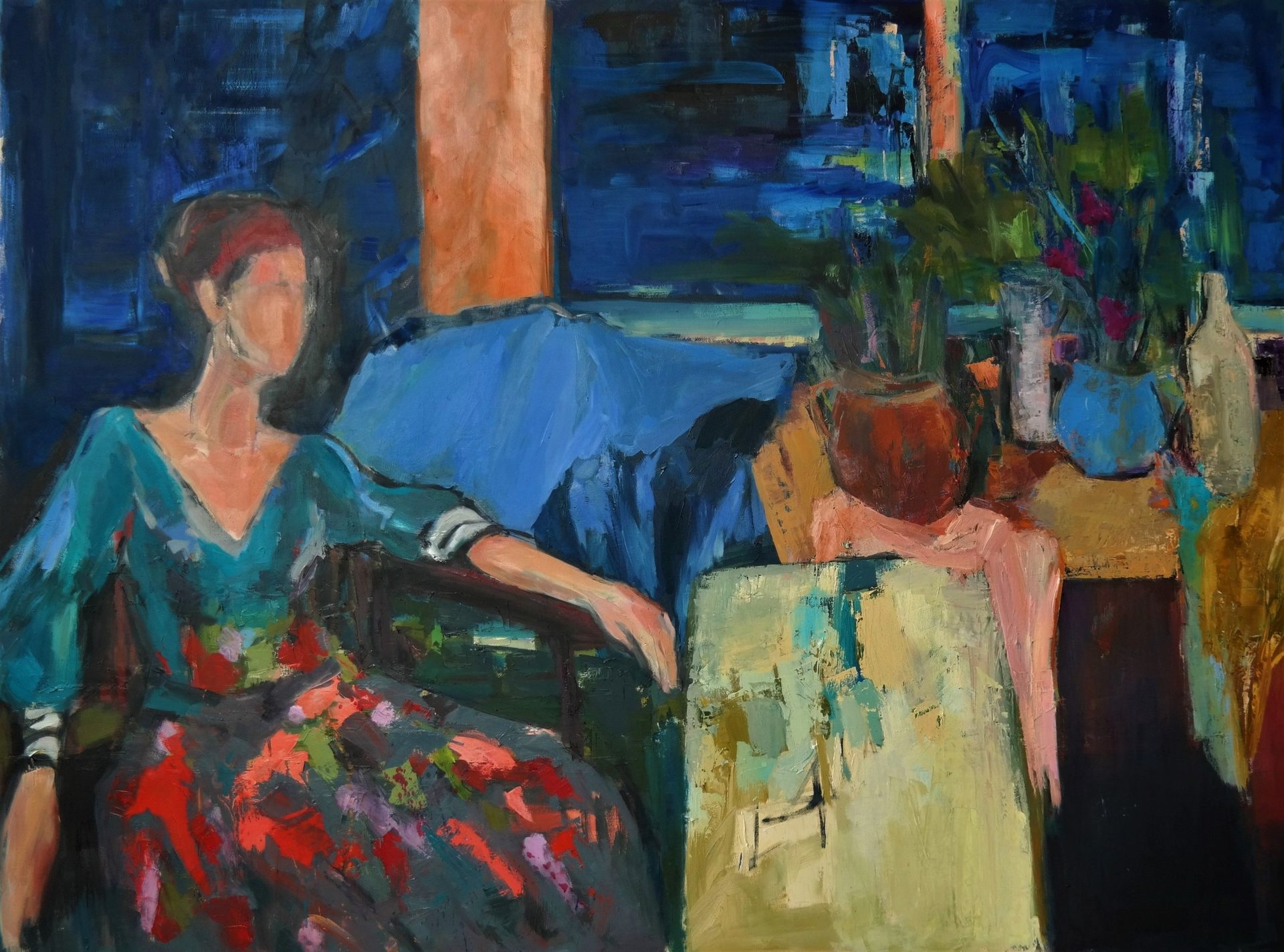 Ulrike Hahn beschäftigt sich in ihren Arbeiten mit Außen- und Innenwelten – gleichbedeutend mit „Andernorts“ und „Hier“. „Andernorts“ - das ist unterwegs, auf Reisen in Deutschland und Südfrankreich. Es sind farbstarke Erinnerungsbilder, die Sinneseindrücke verarbeiten und die Gegensätze von Fülle und Sparsamkeit, gelassener Ruhe und Kraft vereinen. Das „Hier“ ist gleichbedeutend mit Berlin und dem vertrauten Atelier. Die Figurenbilder und Interieurs bieten einen Ausschnitt der Innenwelt der Künstlerin, in deren Mittelpunkt Beständigkeit und Vergänglichkeit als Kontrast stehen. „Als Künstlerin führt mein persönlicher Weg dazu, Emotionen und visuelle Eindrücke malerisch zu verarbeiten. Die Auseinandersetzung mit der Realität führt zur subjektiven Wahrnehmung, die es gilt immer wieder gegen Widerstände – innere und äußere- zu behaupten.“ (Ulrike Hahn)