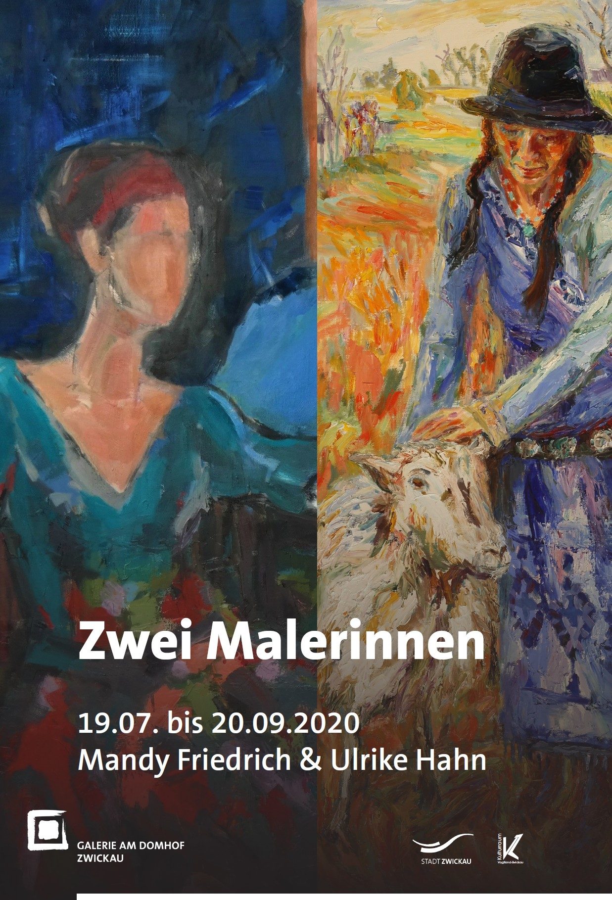Mandy Friedrich zeigt in der Ausstellung mit ihrer großformatigen Ölmalerei, die zwischen 2012 und 2020 entstand, hiesige Menschen und Landschaften, aber auch Impressionen aus Georgien, wohin die Malerin im Rahmen eines Stipendiums 2019 reiste. Alle Bilder eint der liebevolle Umgang zwischen Mensch, Tier und Natur. Die gegenwärtig gezeigten Bilder Ulrike Hahns sind vielseitig lesbar. Die Landschaften und figurativen Arbeiten ergänzen einander und zeugen von einer malerischen Auffassung mit sensitiver Farbgebung, die richtungsweisend ist und über das Formale hinausgeht. Allen Arbeiten gemein ist das atmosphärisch Aufgeladene und die Verdichtung des Gesehenen und Erlebten.