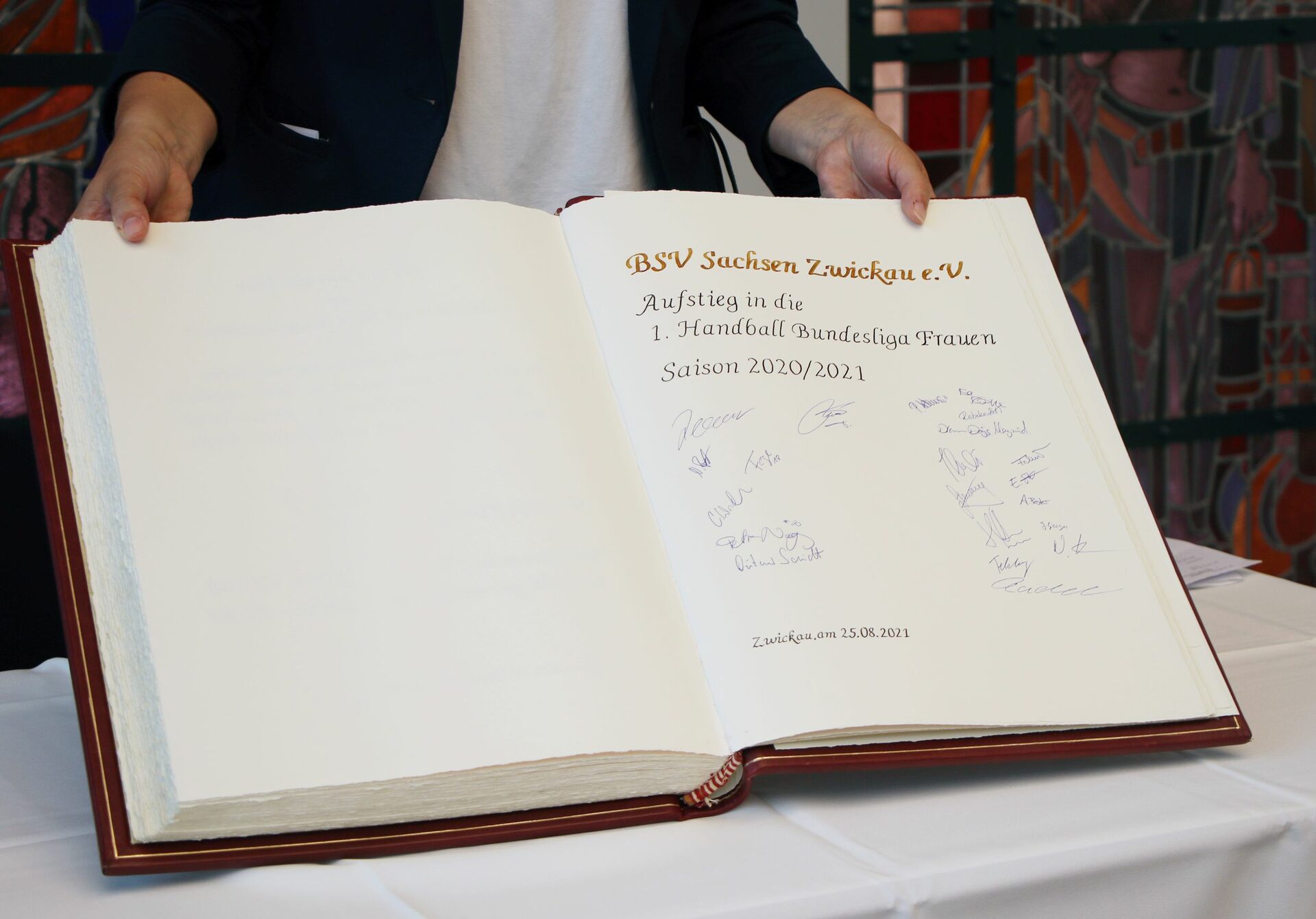 Handballfrauen des BSV Sachsen Zwickau e. V. tragen sich ins Ehrenbuch der Stadt ein