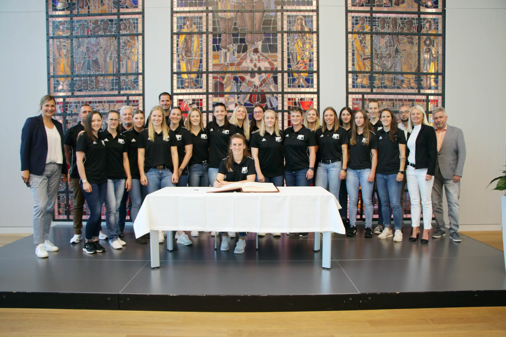 Neben der Mannschaft trug sich der Trainerstab und auch das Präsidium in das Ehrenbuch der Stadt ein.