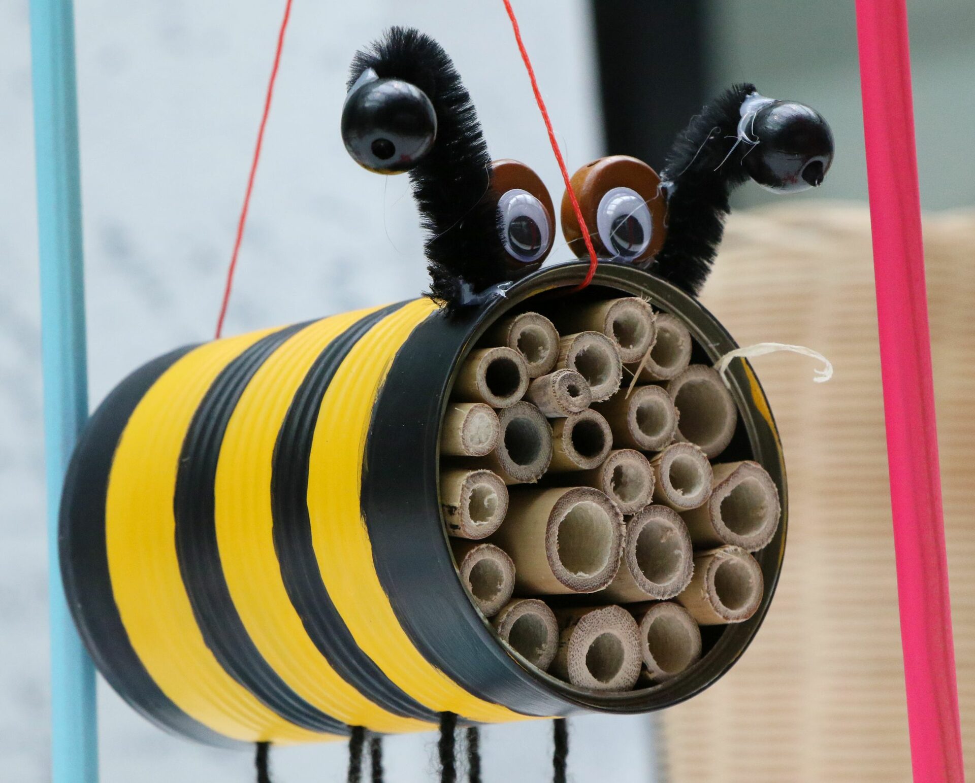 Ähnlich wie die Spielstadt „Mini Zwickau“ verfolgten auch die Sommerwerkstätten das Ziel, den Mädchen und Jungen in den Ferien handwerkliches Knowhow, Traditionelles und Trendiges spielerisch zu vermitteln. Die Kids konnten sich mit verschiedenen Arbeitsabläufen und Werkstoffen vertraut machen, lernten z. T. echtes Werkstattflair und Handwerk kennen, beschäftigten sich mit Mode und Nähen, Fotografie und Druck und vielem anderen mehr – natürlich alles völlig ferienentspannt und unter spielerischer Anleitung durch Erwachsene. Und so entstanden innerhalb der ersten 14 Ferientage viele schöne Dinge, u. a. coole Figuren, derbe und filigrane Holzarbeiten und durchaus tragbarer Schmuck. Und das ist bei Weitem nicht alles - davon können sich Besucher/-innen der Ausstellung gern selbst überzeugen! Besondere Hingucker in der Galerie der Produkte sind u. a. die detailgetreu und liebevoll in Szene gesetzten Hochstände und Flöße aus Naturmaterial aus dem Freizeitzentrum Marienthal, die Geschichte rund um einen kleinen, kranken Teddy-Findling des JC Atlantis und die witzig-pfiffigen wie farbenfrohen Insekten-Hotels, die beim Spielbus Ferdi hergestellt werden konnten.