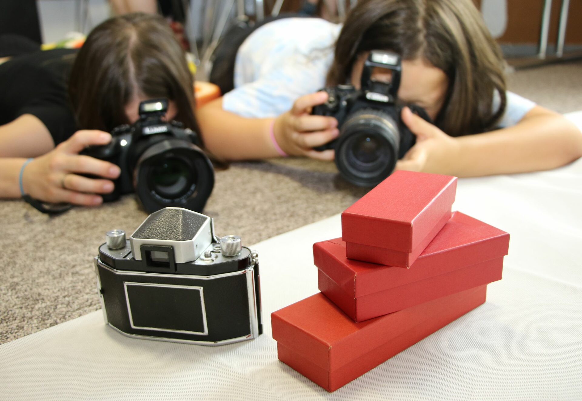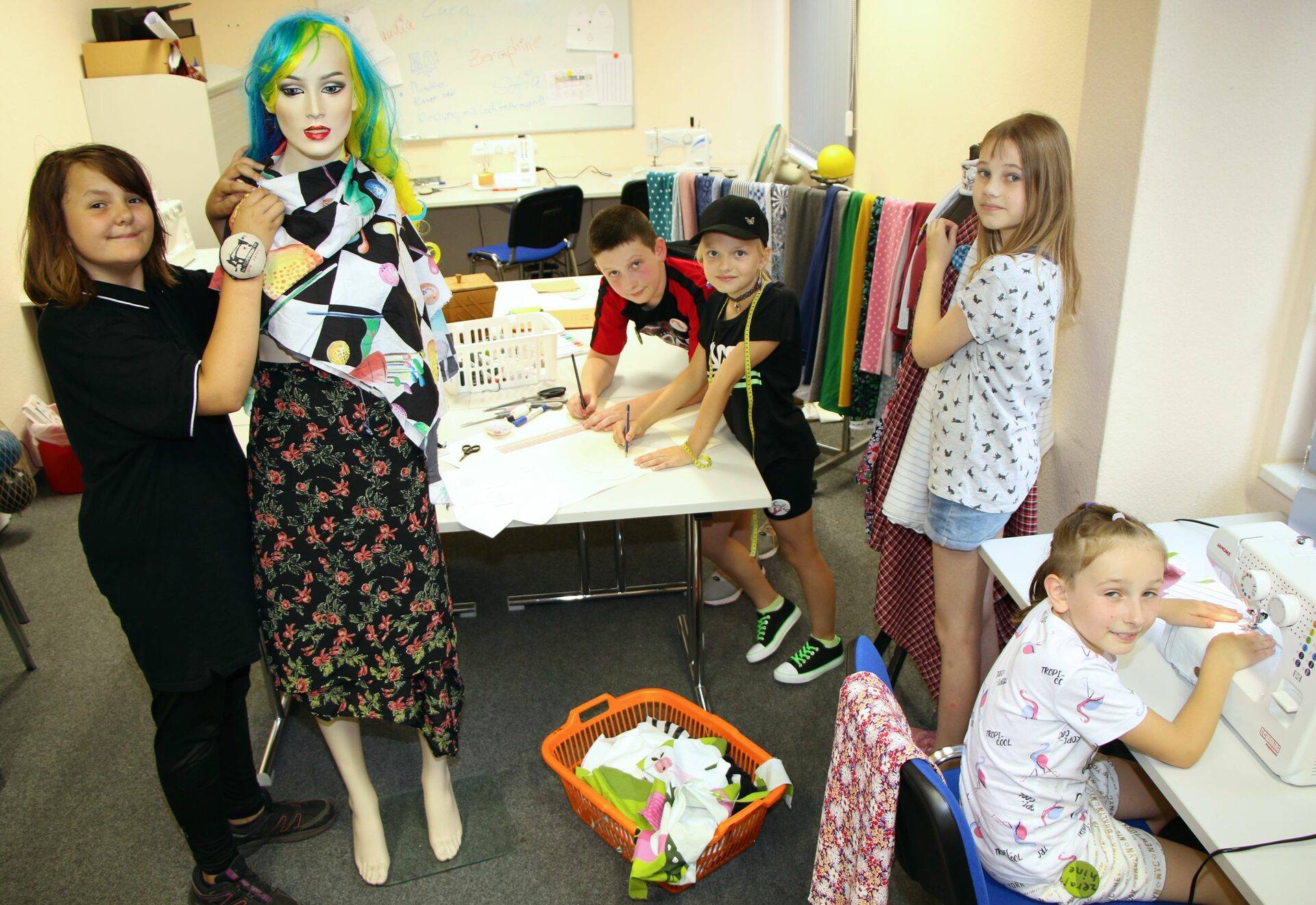 Anlaufschwierigkeiten gab es keine. Ganz im Gegenteil: Die Kids in den Werkstätten kamen z. T. schon mit eigenen Ideen und freuen sich nun auf deren Umsetzung. Das war u. a. im JC City Point/Spielhaus, Hauptstraße 44, zu erfahren. Hier gibt’s insgesamt 4 Werkstätten unter einem Dach. Eine davon ist die Fotowerkstatt, in der sich Néle (11) und Lia Lotta (8) am Montagnachmittag bereits aktiv im Fotoshooting versuchten und Schachteln und Glasmurmeln gekonnt in Szene setzten. Reges Treiben gab´s auch ein Zimmer weiter in der Nähwerkstatt. Ein junges Ferienkids-Designer-Team tüftelt hier an neuen, pfiffigen Outfits für zwei hauseigene Schaufensterpuppen. Luca (13) und Safia (8) kreierten erste Schnittmuster, Vivien (10) und Sophie (11) übten das Abstecken verschiedener Stoffe am Modell und Zeraphine (10) checkte, welche Nahtmuster später zum Einsatz kommen sollen. Etwas ruhiger ging es in der Werkstatt „Bunte Kunst für coole Kids“ vonstatten. Aber nur, weil schon ganz emsig an ersten Entwürfen gearbeitet wurde, aus denen später kleine Kunstwerke entstehen sollen. Inspirationen für Motive holten sich die Mädchen und Jungen kurz vorher auf einem Streifzug durch die Innenstadt.