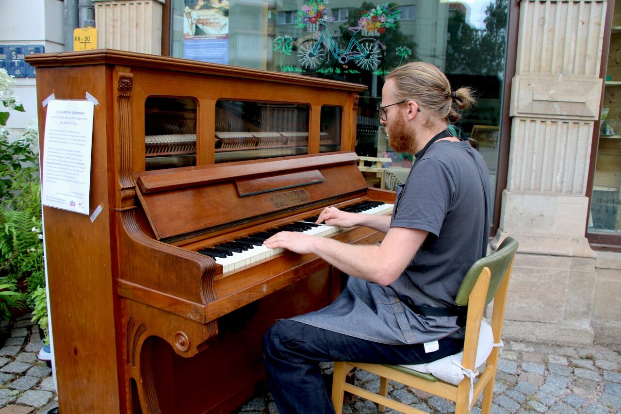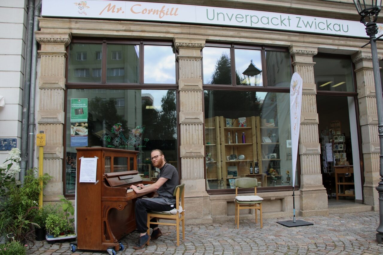 Standortwechsel. Seit heute steht das sehnsüchtig erwartete und beliebte „Klavier für Jedermann“ vor dem Ladengeschäft „Mr. Cornfill Unverpackt Zwickau“ in der Inneren Schneeberger Straße 12. Ab sofort sind also wieder Hobbymusiker, Profipianisten und Interessierte dazu eingeladen, die City mit musikalischen Klängen zu verzaubern. Vom 9. bis 22. August wird das „Klavier für Jedermann“  zwischenzeitlich auch direkt gegenüber von "Mr. Cornfill", vor dem Geschäft „Katrin's Department Store“ platziert . An beiden Standorten wird das Instrument innerhalb der Öffnungszeiten der Ladengeschäfte zur Verfügung stehen.