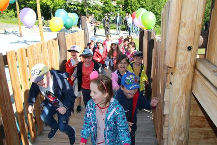 Die Kinder der Kita Hegelstraße waren die ersten "Passagiere" auf dem neuen Spielschiff.