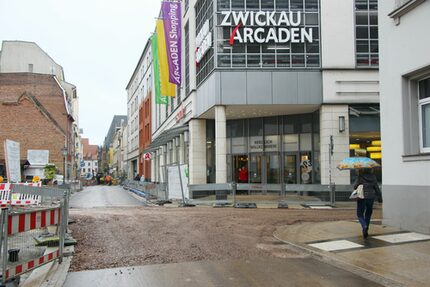 Der Straßenbau auf der Marienstraße wird derzeit im Abschnitt zwischen der Lieferzufahrt der Arcaden und dem Haus Nummer 11 fortgesetzt.