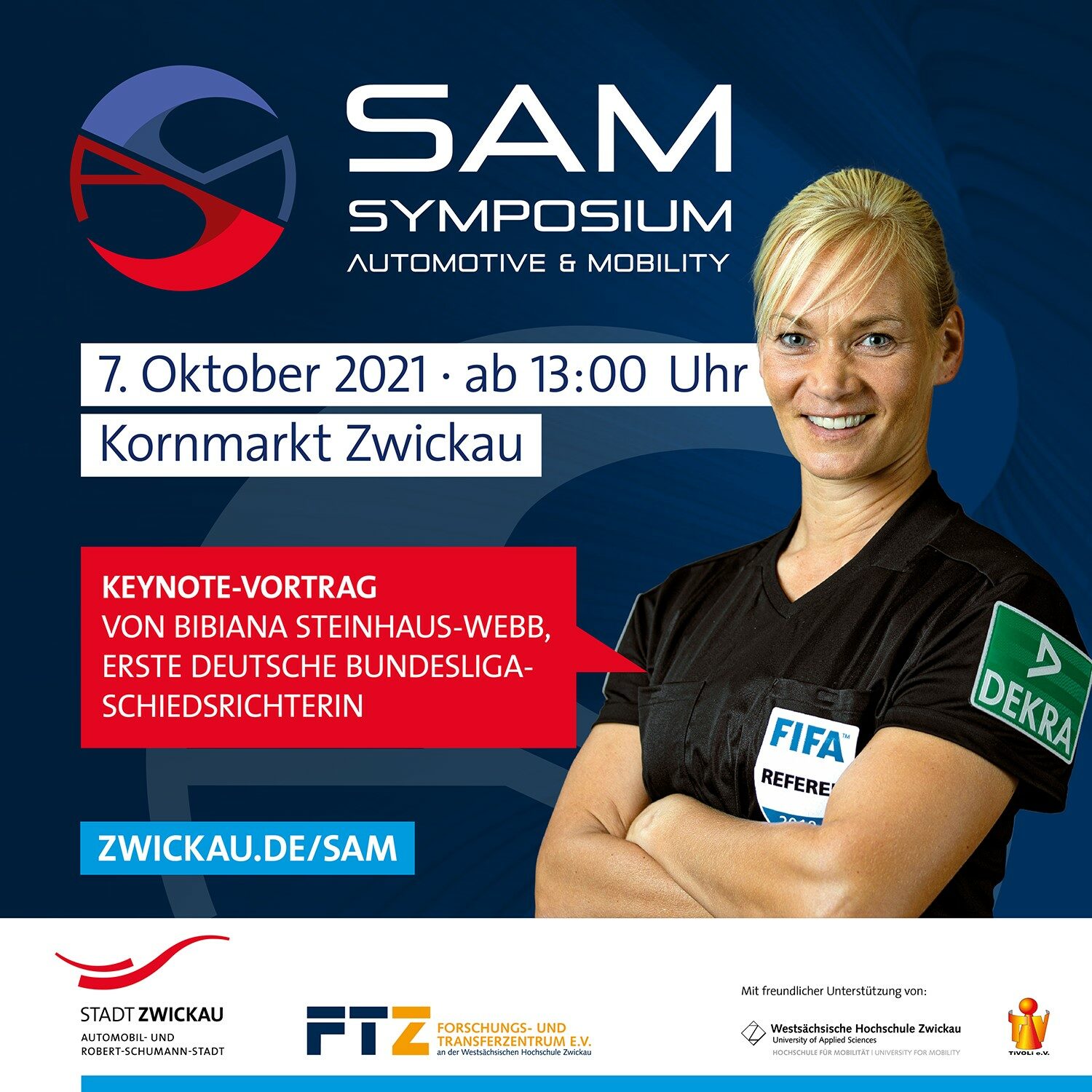 Zur Vernetzung der zukünftigen Fachkräfte mit den Branchenprofis unserer traditionsreichen Automobilregion findet am 7. Oktober 2021 SAM – das 4. Symposium „Automotive & Mobility“ statt. Die vierte Auflage des Symposiums wird erstmals gänzlich nach draußen auf den Kornmarkt, in unmittelbare Nähe zum Innenstadt-Campus der Westsächsischen Hochschule, gelegt. Hier dreht sich ab 13 Uhr alles um die Mobilität von morgen.