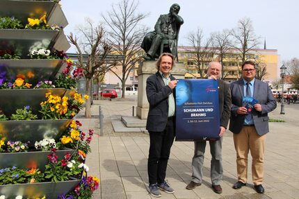 Der Leiter des Robert-Schumann-Haus, Dr. Thomas Synofzik, Kulturamtsleiter Dr. Michael Löffler und Bürgermeister Sebastian Lasch stellten heute das Programm des diesjährigen Schumann-Festes vor (v.l.n.r.).