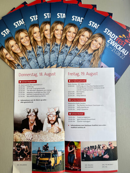 Der aktuelle Stand aller Informationen rund um das Stadtfest wird zudem auf Sonderseiten des Amtsblattes „Zwickauer Pulsschlag“ vom 10. August 2022 nachzulesen sein. Dieser erreicht mit einer Auflage von über 50.000 Exemplaren die Haushalte der Stadt Zwickau.