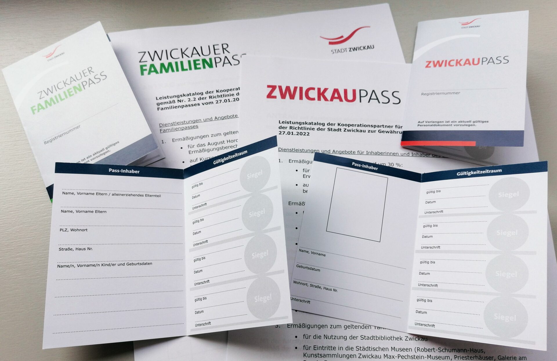 Seit vielen Jahren sind der Zwickau-Pass (Einführung 1993) und der Zwickauer Familienpass (Einführung 2001) feste Bestandteile des freiwilligen Leistungsangebotes der Stadtverwaltung Zwickau. Beide Pässe sollen anspruchsberechtigte Eltern und Kinder dazu anregen, die Freizeit gemeinsam zu gestalten und ihnen den Zugang zu den bestehenden Angeboten erleichtern.