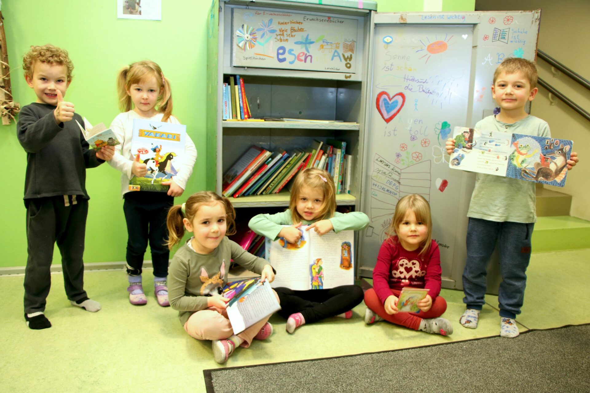 Das haben sich auch die Kinder und Erzieherinnen in der I-Kita „Krümelkiste“ in Pölbitz gefragt und ein neues Projekt ins Leben gerufen: den offenen „Bücherschrank für ALLE“. Ganz so neu ist die Idee allerdings nicht. „Dazu inspiriert haben uns die Büchertauschzellen im Stadtzentrum.“ erklärt Cindy Lorenz, Erzieherin der Kita-Gruppe „Rasselbande“ und Initiatorin der Aktion. „Unsere Kinder schätzen die Bücher und wollen auch andere daran teilhaben lassen. Bücher sind ein wertvolles Gut und viel zu schade zum Wegwerfen. Gut erhaltene Bücher sollen weiterleben und können Freude stiften. Mit diesem Gedanken der Nachhaltigkeit entstand die Projektidee vom offenen Bücherschrank direkt in unserer Kita. Das Projekt schont außerdem den Geldbeutel der Familien und die Umwelt. Auch das möchten wir mit unserem Angebot vermitteln.“ so Lorenz.