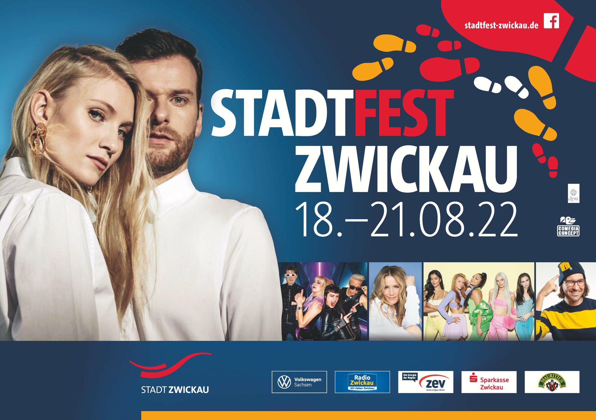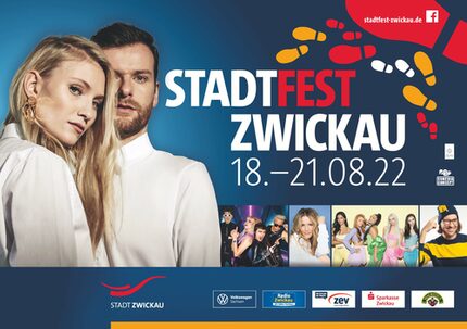 „Spaß hautnah – Party pur – DU mittendrin“ heißt es beim 19. Stadtfest in der Automobil- und Robert-Schumann-Stadt. Im bezaubernden Altstadtambiente zelebrieren die Zwickauer und ihre Gäste vom 18. bis 21. August auf dem Hauptmarkt, dem Domhof und dem Kornmarkt ihr größtes Fest.