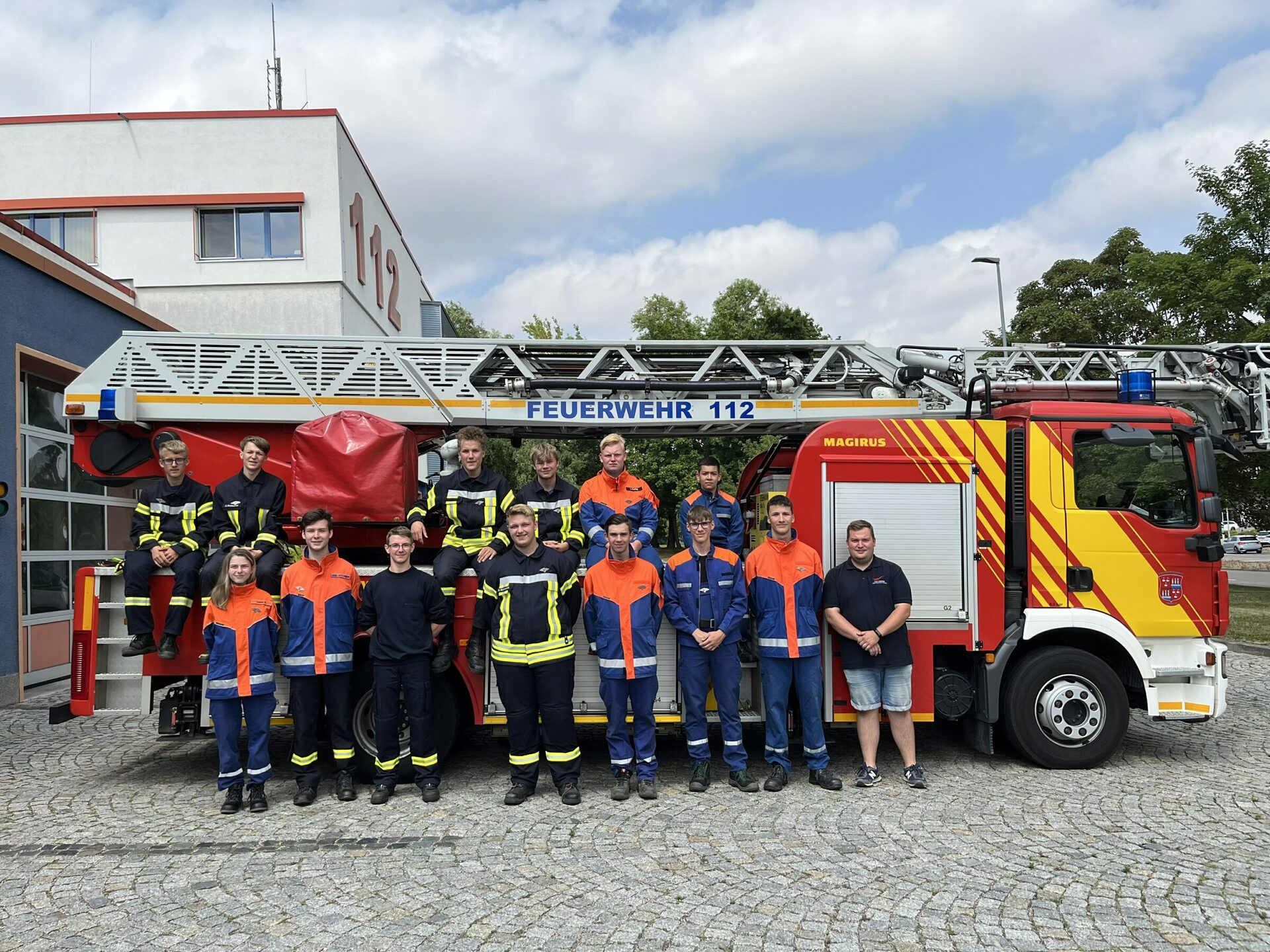 Seit Montag hielten sich 12 Jugendliche von 6 Zwickauer Jugendfeuerwehren an der Landesfeuerwehr- und Katastrophenschutzschule in Nardt auf. Heute kehrten sie nach Zwickau zurück, ausgezeichnet mit der „Leistungsspange“, der höchsten Auszeichnung des Deutschen Jugendfeuerwehr. Empfangen wurden die Teilnehmer und ihre beiden Betreuer an der Wache der Berufsfeuerwehr durch Stadtjugendfeuerwehrwart Marcel Morgenstern und Steffen Kühnert, Abteilungsleiter Leitstelle und Kommunikationstechnik der Feuerwehr Zwickau.