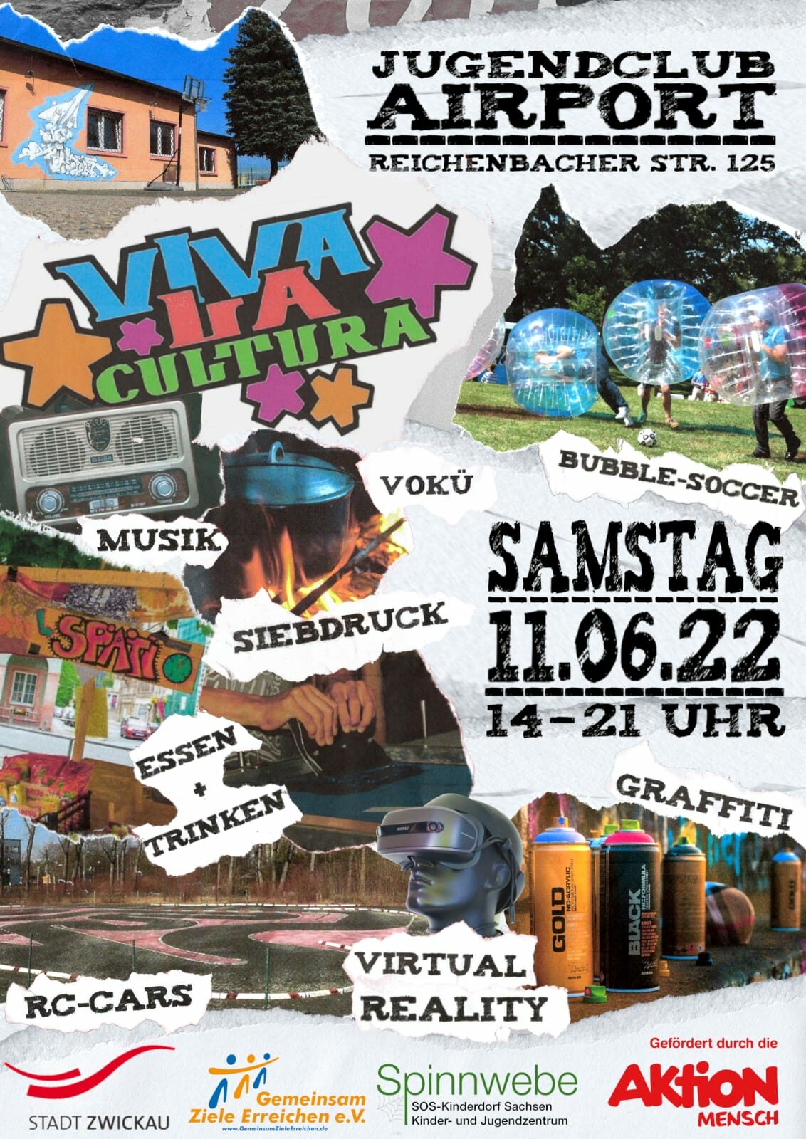 Nach langjähriger Pause gibt es wieder „Viva la Cultura“. Der Jugendevent findet am Samstag, 11. Juni von 14 bis 21 Uhr auf dem Gelände des Jugendclubs „Airport“ und des angrenzenden Skateplatzes an der Reichenbacher Straße statt. Eingeladen sind alle Interessierten im Alter von 10 bis 27 Jahren.