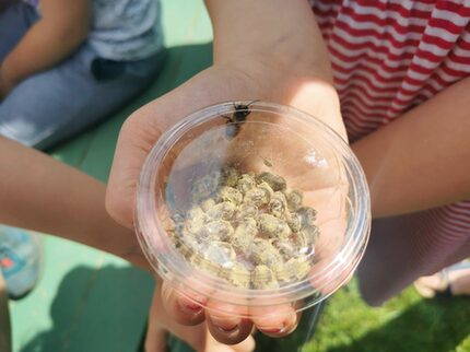 Sie sind klein, emsig und für Natur und Mensch unverzichtbar: die Wildbienen. Dass die kleinen „Summer“ für die Fortpflanzung von Blütenpflanzen und eine biologische Vielfalt sorgen, wissen die Hortkinder der „Planitzer Rasselbande“ schon längst. Seit über 10 Jahren kümmern sich die Kids mit selbstkreierten Insekten- und Ohrwurmhotels und Futtertassen um vielerlei, was im Hort-Garten herumfliegt, -kriecht und -krabbelt. Auch gegärtnert wird gern, erst recht, wenn später genascht werden darf. Jedes Jahr landen u. a. Kräuter und verschiedene Gemüse- und Obstsorten zur Weiterverarbeitung in der eigenen kleinen Kinderhort-Küche. Zudem stellt die Blütenvielfalt im „Gartenlabor“ eine prall gefüllte Speisekammer für die (Wild-)Bienen dar.