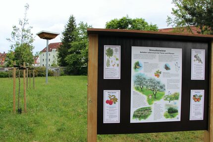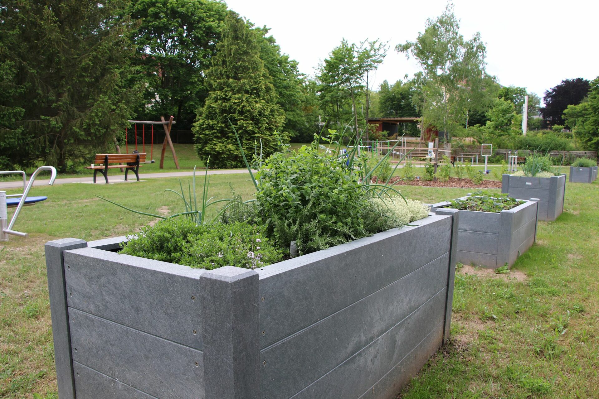 Freuen können sich die Parkbesucher auch über sechs, mit Erdbeeren und Kräutern bepflanzte Hochbeete, 20 Obststräucher und zehn Obstbäume (Apfel, Birne, Pflaume, Kirsche), von denen auch genascht werden darf. Damit soll den Kindern und Jugendlichen ein Stück Natur nähergebracht werden. Eine entsprechende Lehrtafel informiert ausführlich dazu.