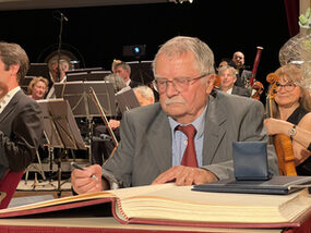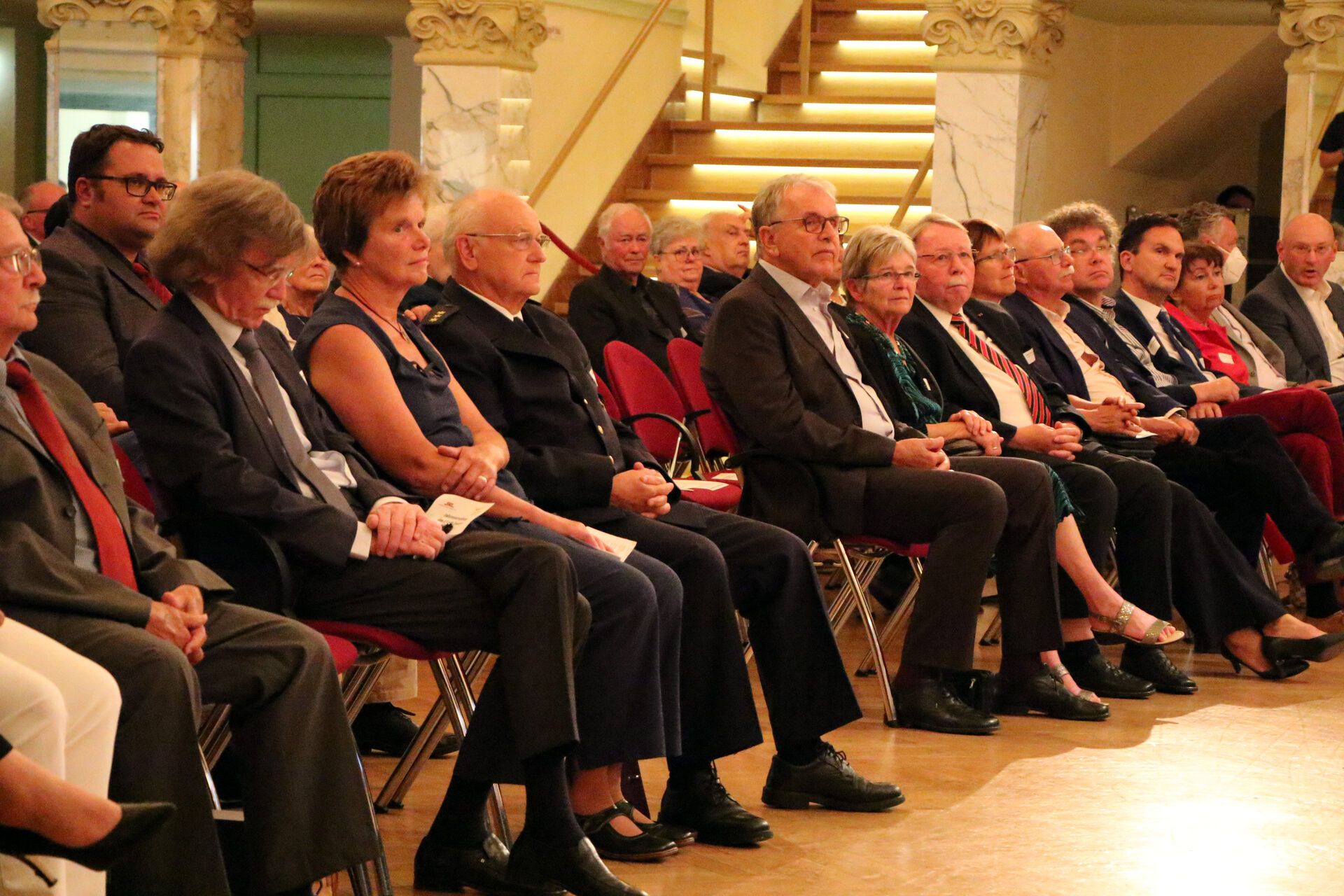 Das traditionelle Treffen stand im Zeichen des Dialogs und Gedankenaustauschs. Angesichts der dramatischen Kriegsgeschehnisse war es geprägt von der Solidarität mit der Ukraine und besonders mit den Menschen in der Zwickauer Partnerstadt Volodymyr. Neben Vertretern der Wirtschaft und des gesellschaftlichen Lebens wurden in diesem Jahr insbesondere ehrenamtlich Engagierte eingeladen, die mit Herzblut und Tatkraft den Menschen helfen, die auf der Flucht vor dem Krieg sind bzw. die vor Ort die Schrecken des Krieges erleiden müssen. Als Ehrenbürger waren Alt-OB Rainer Eichhorn und Fußball-Legende Jürgen Croy beim Jahresempfang anwesend.