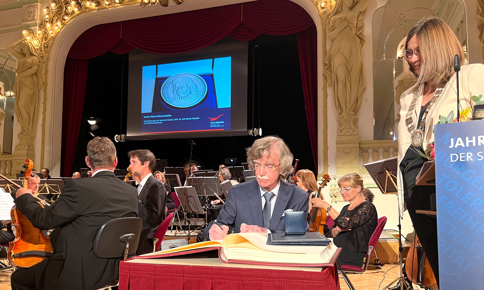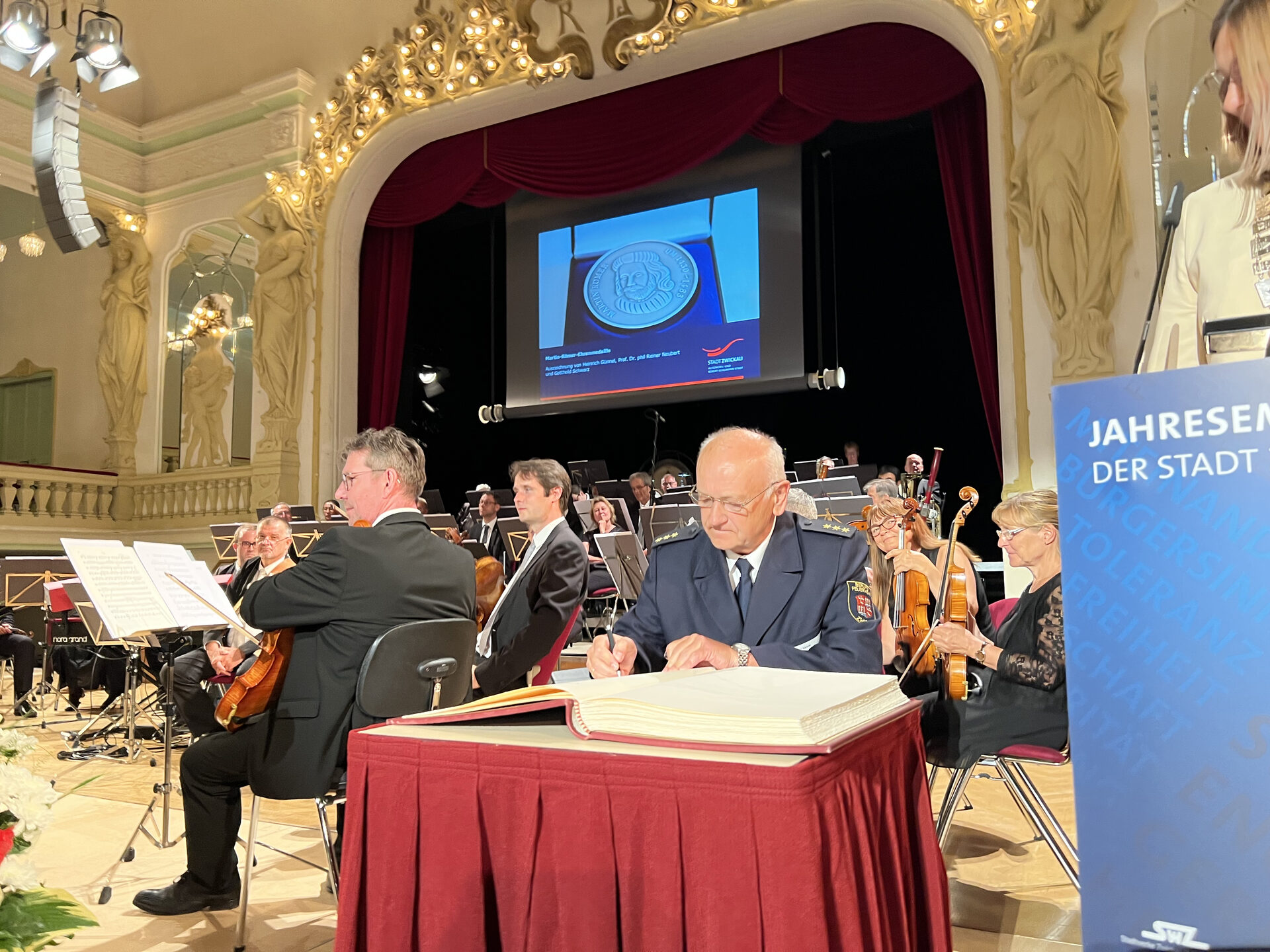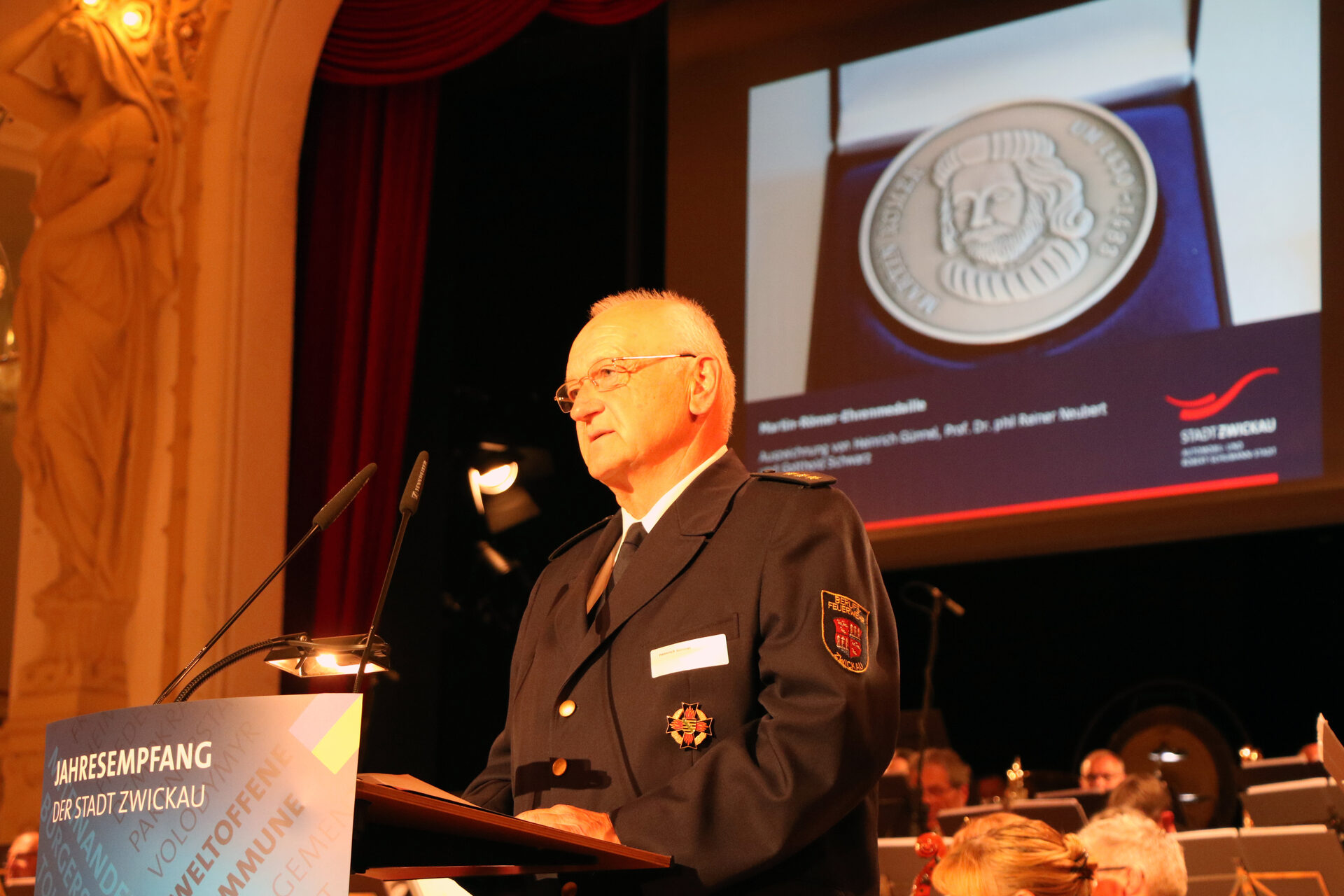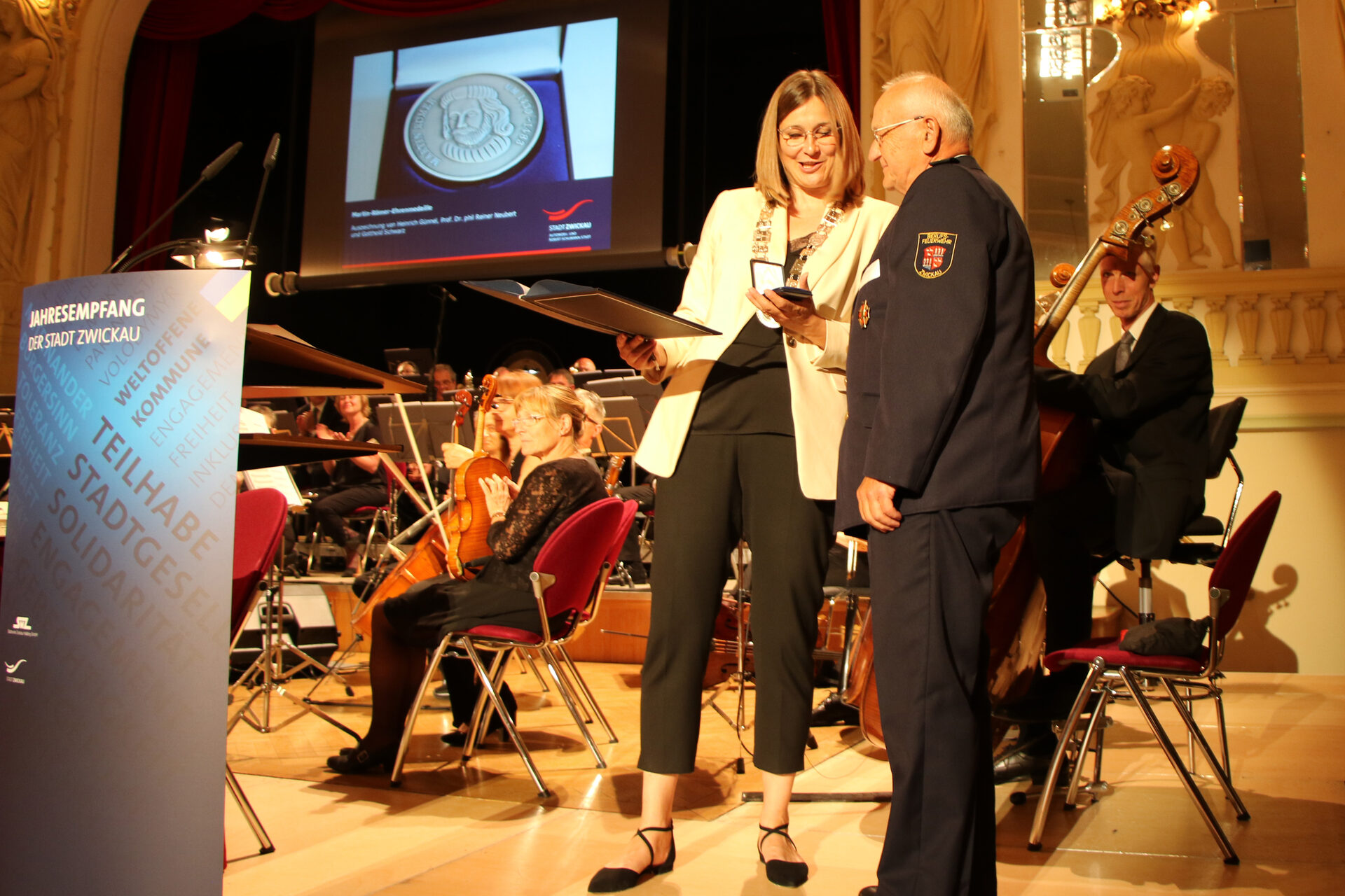 Nach der – trotz aller Umstände – von Optimismus geprägten Rede des Stadtoberhaupts erklang mit dem Slawischen Tanz g-moll op. 46, Nr. 8 ein Stück von Antonín Dvořák. Ebenfalls zum ersten Mal nahm Constance Arndt danach die Auszeichnungen der Stadt Zwickau mit der Martin-Römer-Medaille vor. Diese gingen in diesem Jahr an den langjährigen Chef der Zwickauer Berufsfeuerwehr Heinrich Günnel, an Prof. Dr. phil. Reiner Neubert, der sich jahrzehntelang für Bildung und Kultur in seiner Heimatstadt Zwickau engagierte sowie an den Sänger, Dirigenten und Thomaskantor Gotthold Schwarz.