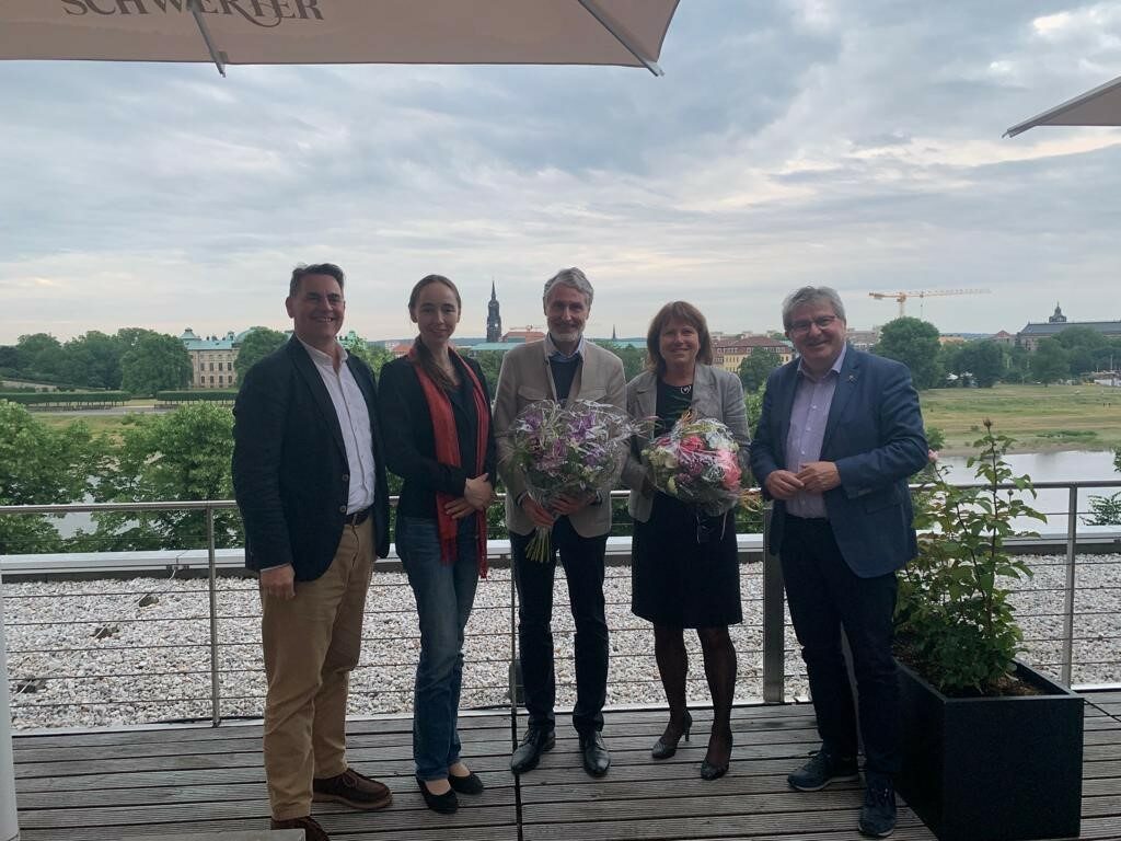 Foto (Deutscher Städtetag) v.l.n.r.: Stefan Hahn (Beigeordneter Arbeit, Soziales, Jugend und Gesundheit beim Deutschen Städtetag), Dr. Kristin Kaufmann (Beigeordnete für Arbeit, Soziales, Gesundheit und Wohnen der Landeshauptstadt Dresden), Dr. Joachim Gerner (Bürgermeister a.D. der Stadt Heidelberg), Dr. Pia Findeiß (Oberbürgermeisterin a.D. der Stadt Zwickau) und Peter Renzel (Stadtdirektor der Stadt Essen)
