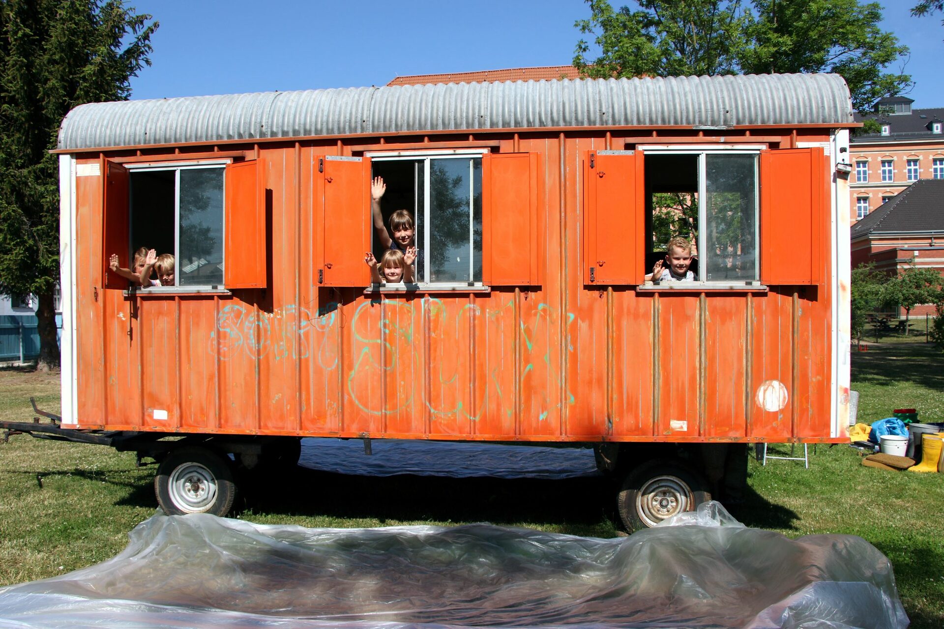 Jetzt ist zur Freude der Kids ein neuer Bauwagen in Sicht! Seit Mitte Mai steht dieser im Garten der Kita Krümelkiste und wird runderneuert. Ein engagiertes Erzieher-Team, beherzte Eltern und emsige Kids helfen dabei.