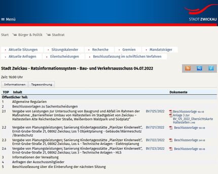 Tagesordnung und Vorlagen sind im Ratsinformationssystem eingestellt.