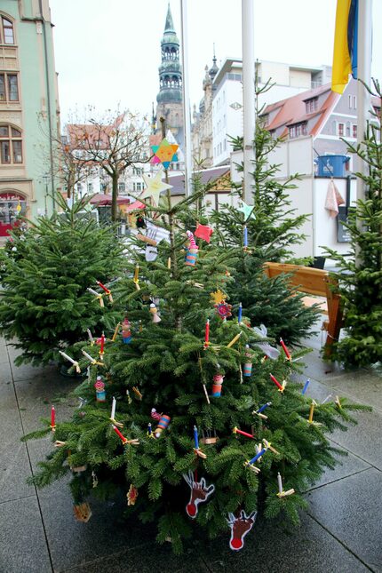 Weihnachtszeit ist auch Bastelzeit, und so haben sich auch in diesem Jahr wieder viele Kinderhände in den Zwickauer Kitas und Horten ans Tüfteln gemacht und dekorativen Baumschmuck kreiert. Zu den fantasievollsten Basteleien zählen u. a. glänzend-bunte Perlensterne, Klammer-Wichtel und Tannenbäume aus kleinen Ästen. Ein erster Teil davon ziert seit heute die kleinen Weihnachtsbäume, die direkt vorm Rathaus stehen. Die meisten Objekte wurden aus einfachen Alltagsdingen und Naturmaterial, z. T. kombiniert mit Farbe und Farbpapier, gefertigt. Viel braucht’s somit nicht, um hübsche Dinge herzustellen, Kinderaugen zum Leuchten zu bringen und Freude zu schenken.