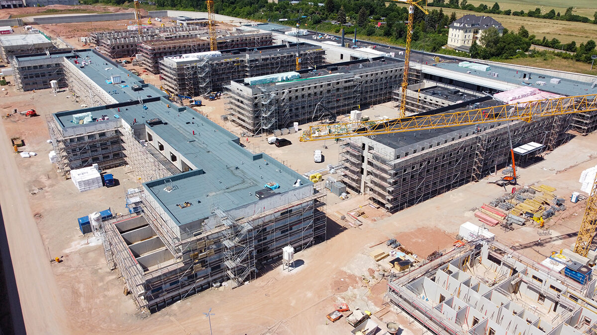 Am gestrigen Freitag konnte das Richtfest für den Neubau der Justizvollzugsanstalt im Stadtteil Marienthal begangen werden. Neben den Bauschaffenden und den am Bau beteiligten Unternehmen nahmen nach Angaben des Sächsischen Staatsministerium der Finanzen der Amtschef des Sächsischen Finanzministeriums Dirk Diedrichs, Thüringens Infrastrukturministerin Susanna Karawanskij, Sachsens Justizstaatssekretär Mathias Weilandt und Thüringens Justizstaatssekretär Sebastian von Ammon teil.