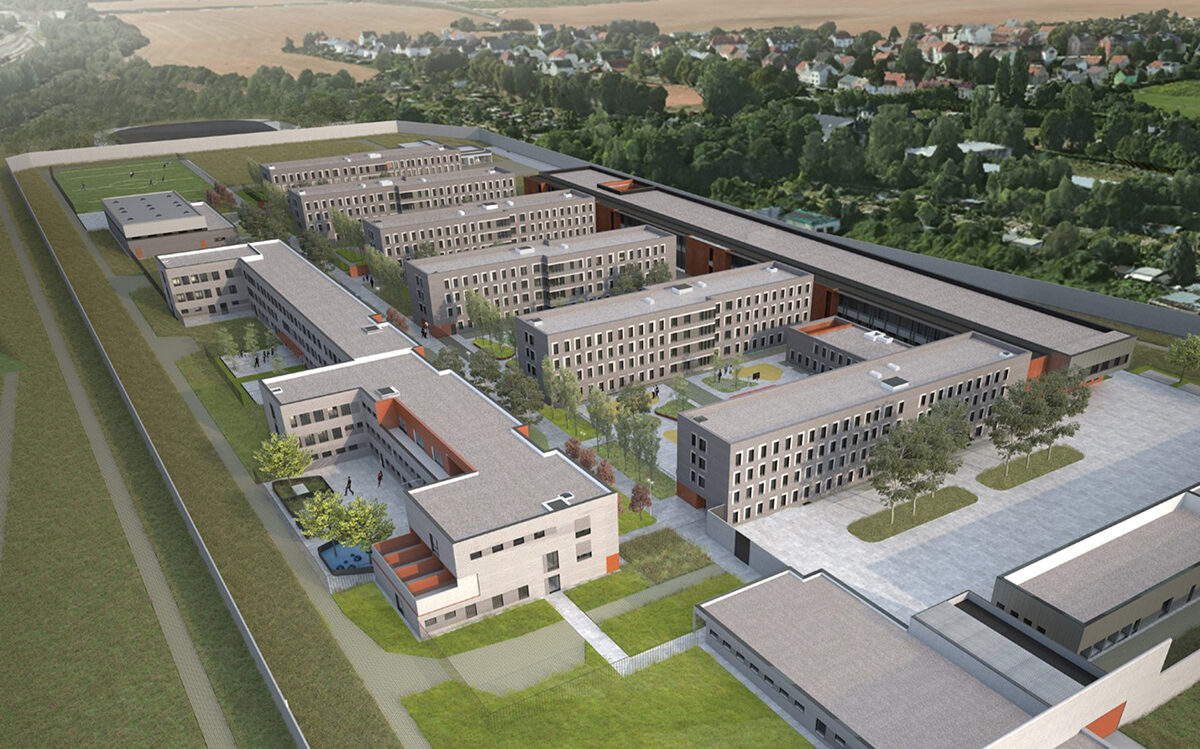 Unter Leitung des Staatsbetriebs Sächsisches Immobilien- und Baumanagement (SIB) entstehen auf dem ehemaligen RAW-Gelände auf einer Fläche von gut 30.000 Quadratmetern unter anderem sechs Hafthäuser für den geschlossenen Vollzug, ein Hafthaus für den offenen Vollzug, eine Sporthalle, Arbeitsbetriebe sowie ein Kultur- und Verwaltungsgebäude mit einem Besucherzentrum. Es werden 820 Haftplätze zur Verfügung stehen, davon 450 für Sachsen und 370 für Thüringen. Die Fertigstellung des Baus soll im zweiten Quartal 2024 erfolgen. In der zweiten Jahreshälfte 2024 ist die schrittweise Inbetriebnahme der gemeinsamen JVA geplant. Der Neubau soll bestehende Gefängnisse wie Hohenleuben in Ostthüringen, die bisherige JVA Zwickau und auch die JVA Zeithain ersetzen.