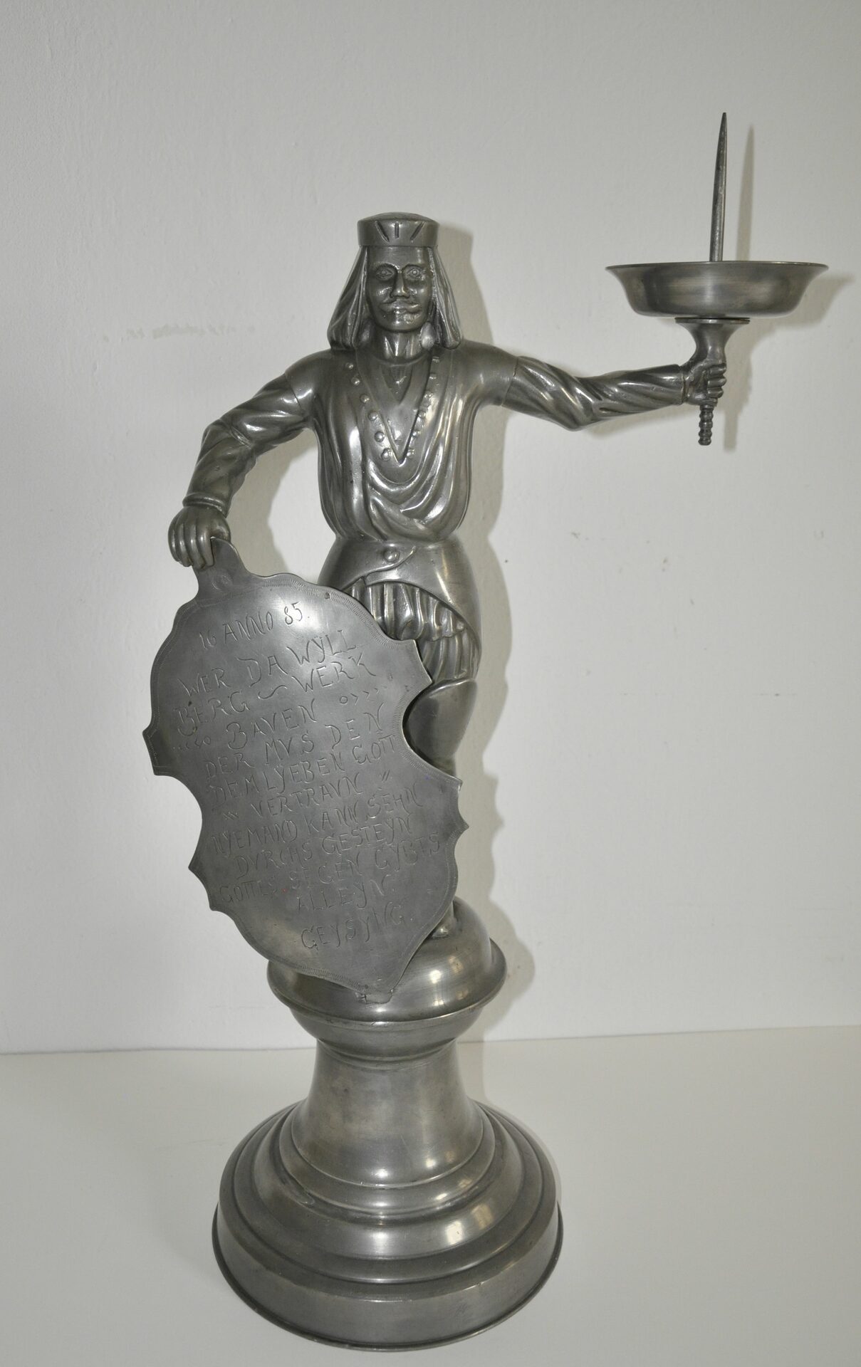 Altarbergmannsleuchter aus Zinn, entstanden in der 2. Hälfte des 19. Jahrhunderts.