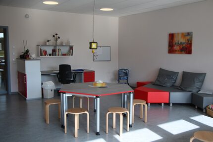 Im ersten Bauabschnitt wurde an der Südseite der Grundschule der eingeschossige Hort angebaut. Der Flachbau ist funktionell mit dem Kellergeschoss (Souterrain) der Grundschule verbunden. Der Zugang erfolgt von der Nord- bzw. Südseite von der Hofseite aus. Der südseitige Zugang ist barrierefrei. Die Kinder können nach Unterrichtsschluss direkt in den Hort gelangen. Dieser ist getrennt von der Schule funktionell nutzbar und besitzt eigene Umkleideräume und sanitäre Anlagen. Der Hortanbau ist für ca. 130 - 140 Kinder ausgelegt. Es bestehen sechs Gruppenräume, eine Kinderküche und Räume für Hortleitung, Personal- und Lagerräume. Herausforderungen, wie z. B. die Lage im Hochwasserschutzgebiet, wurden durch planerische Anpassungen gelöst. Die Inbetriebnahme erfolgte nach den Sommerferien mit Beginn des Schuljahres 2020/2021.