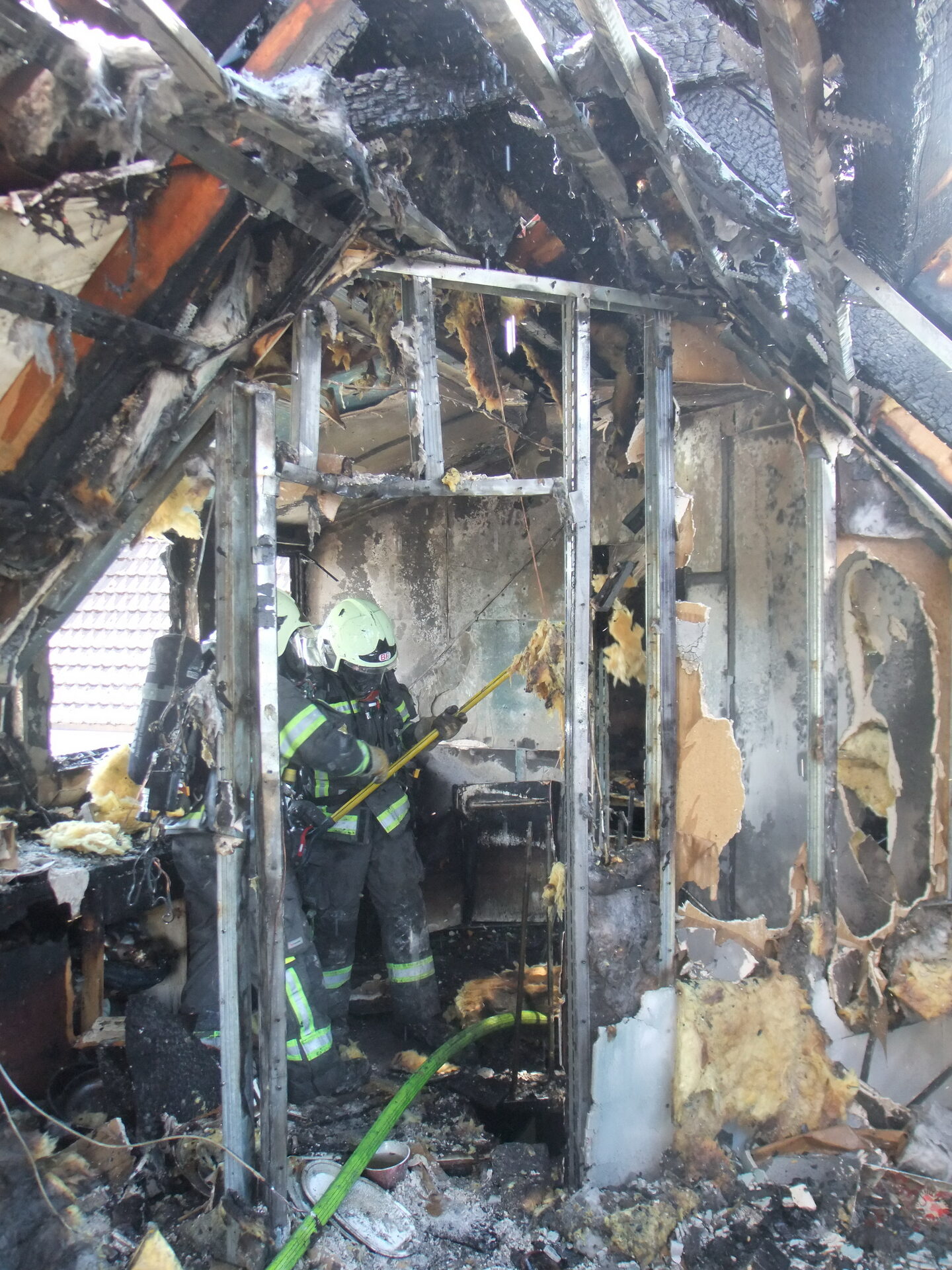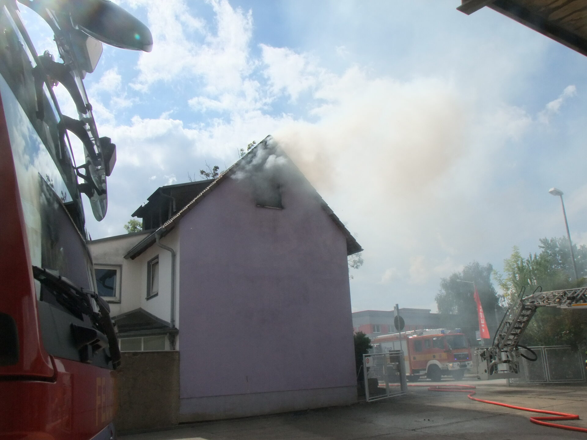 Bei Ankunft an der Einsatzstelle bestätigte sich die Lage. Die schwer verletzte Person war bereits durch die zuerst am Notfallort eingetroffene Rettungswagenbesatzung des ASB versorgt und mit dem Radlader aus einer benachbarten Firma bereits von einem Vordach gerettet worden. Der Brand im Dachgeschoss konnte schnell gelöscht werden. Für die Dauer des Einsatzes war die Reichenbacher Straße voll gesperrt.