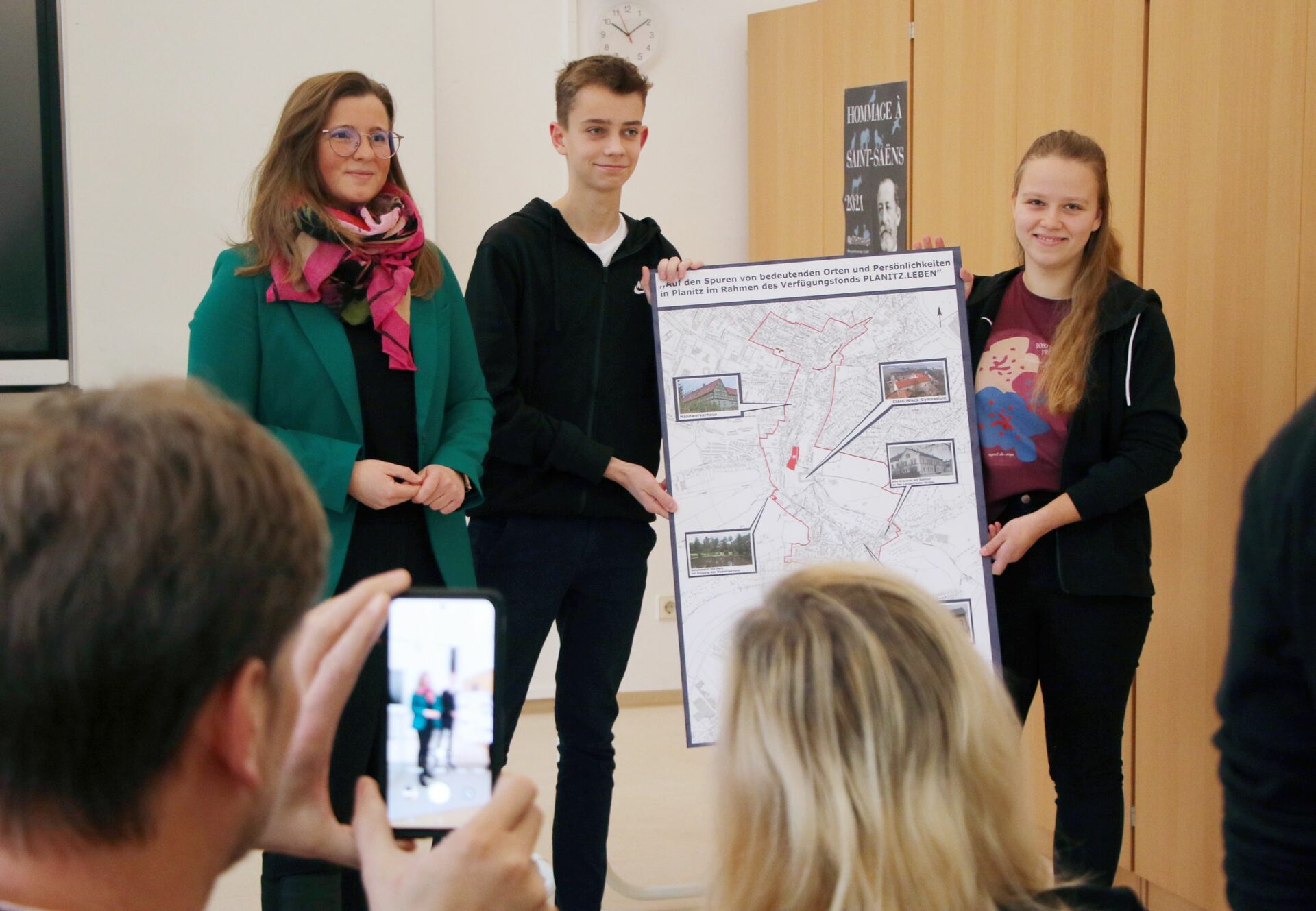 Mit der offiziellen Übergabe einer Karte des Fördergebietes „Nieder- und Oberplanitz 2012“ an die Schülerinnen und Schüler des Clara-Wieck-Gymnasiums (CWG) wurde heute Vormittag der Grundstein für die Recherche und Darstellung bedeutender Planitzer Orte und Persönlichkeiten gelegt.