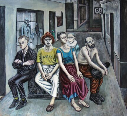 In den 1970er Jahren entstehen die ersten gegenständlichen Arbeiten: kühle, sachliche Figurenbilder und Stadtlandschaften mit einem zurückhaltenden Kolorit, die sich von den symbolgeladenen Werken ihrer Lehrer deutlich abheben. Doris Ziegler zeigt in ungeschönten wie unpathetischen Darstellungen den Alltag, gespiegelt in grauen, trostlos scheinenden Straßenzügen oder in Menschen mit blassen Gesichtern.